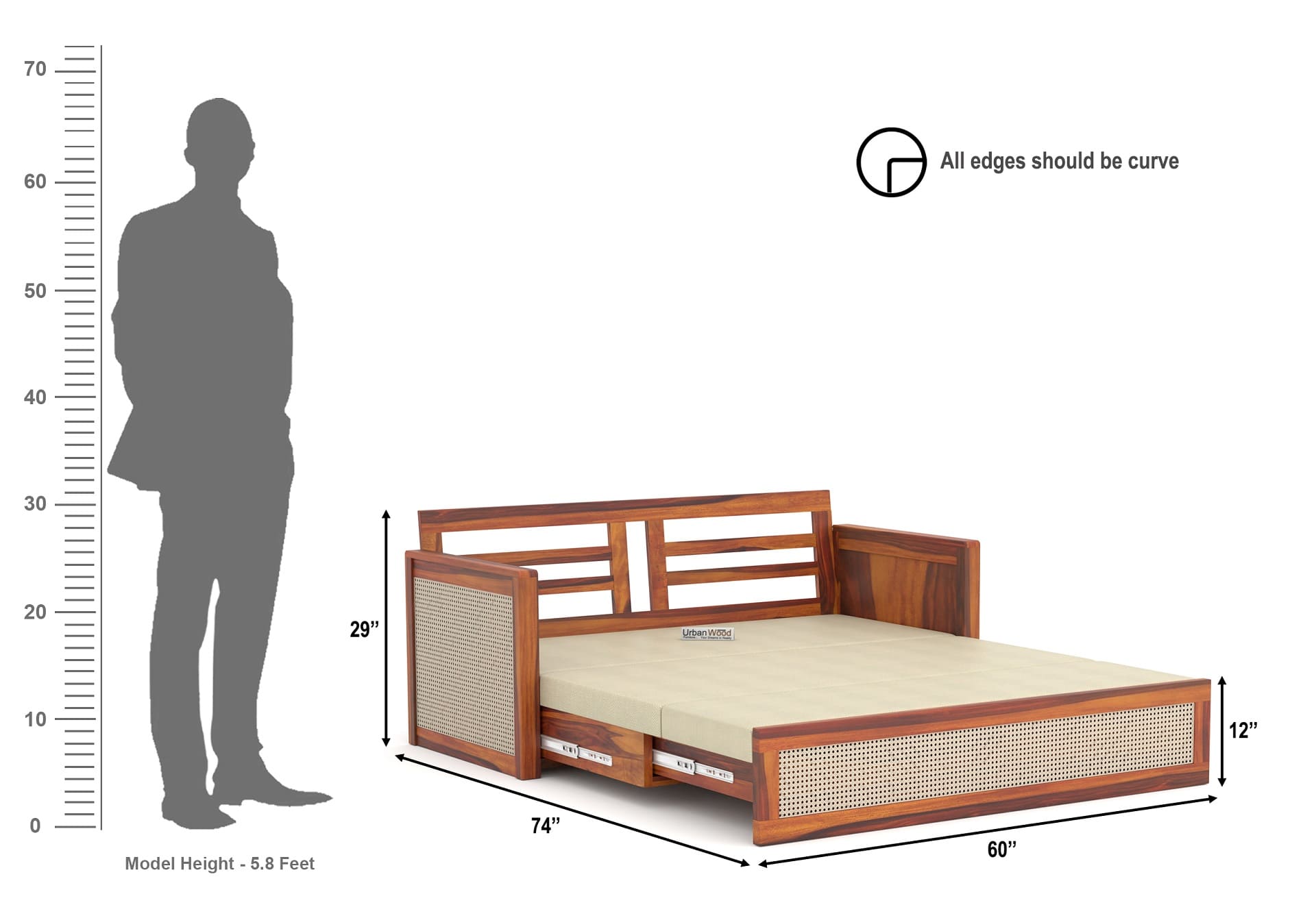 Generic Name -Augusta Sofa Cum Bed (Honey Finish)