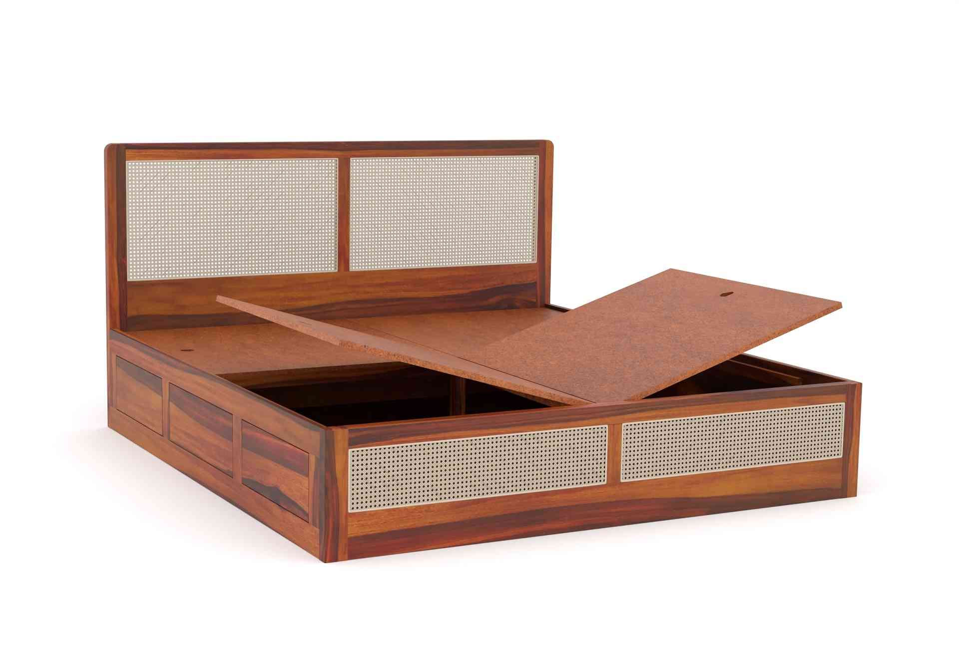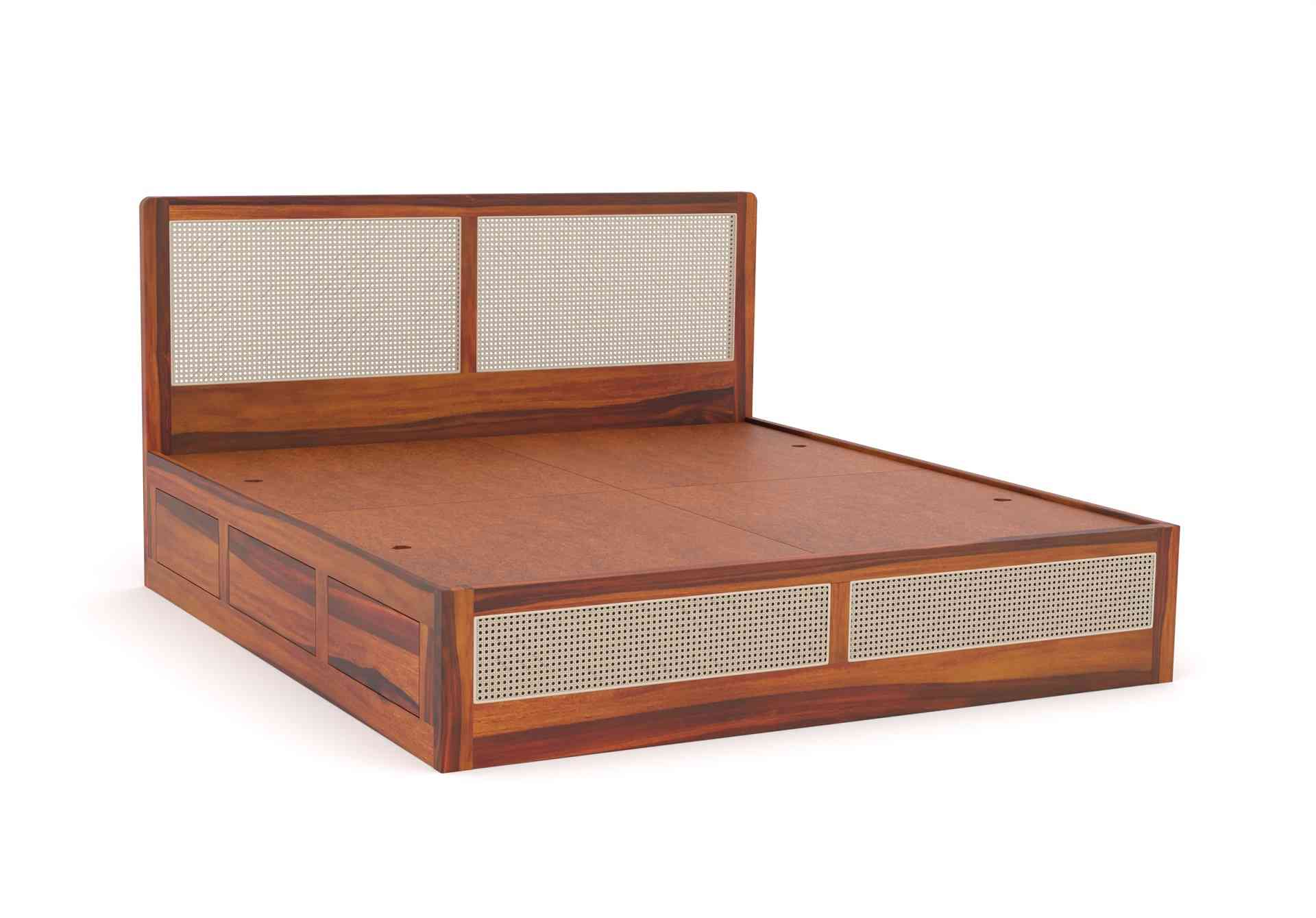 Breeze Wooden Box Storage Bed (King Size, Honey Finish)
