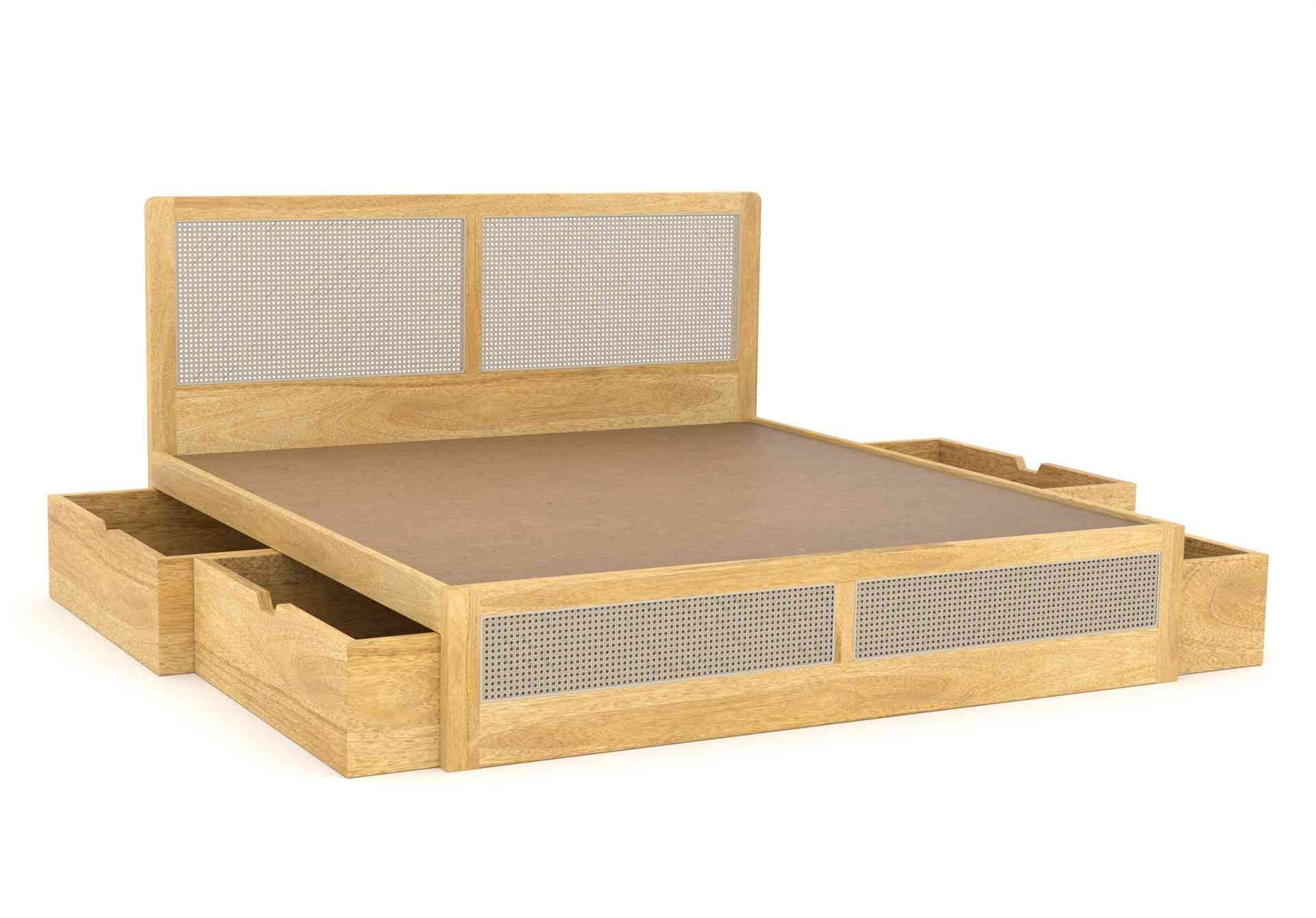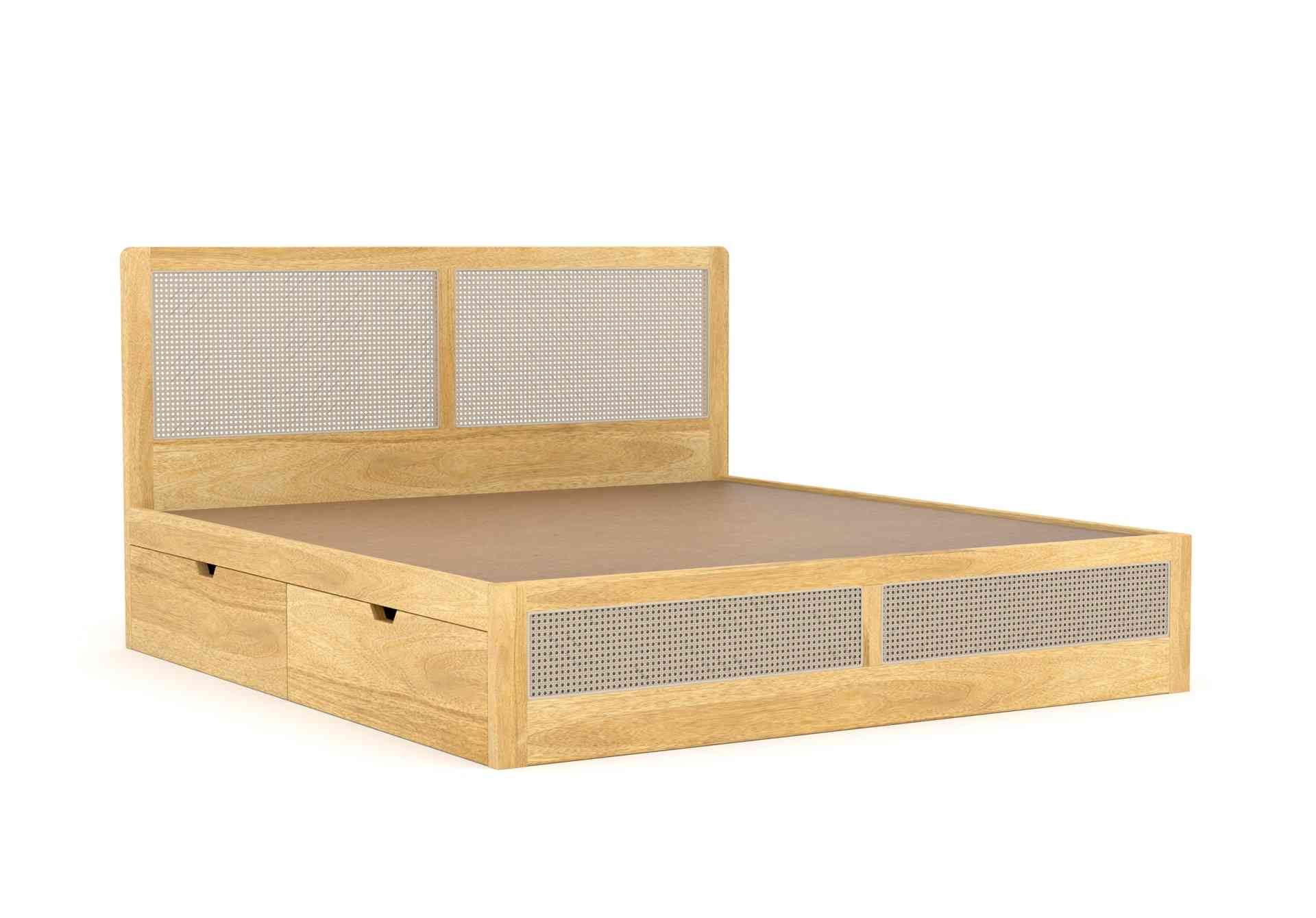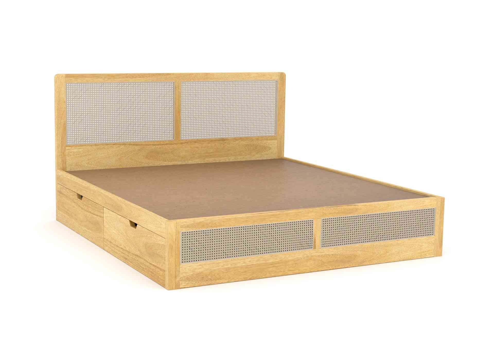 Breeze Wooden Drawer Storage Bed (King Size, Natural Finish)