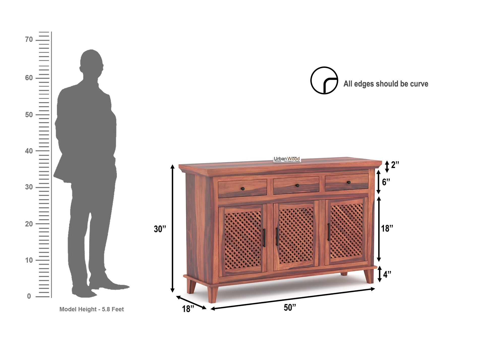 Dimensions (Inch) : 50 L x 18 W x 30 H