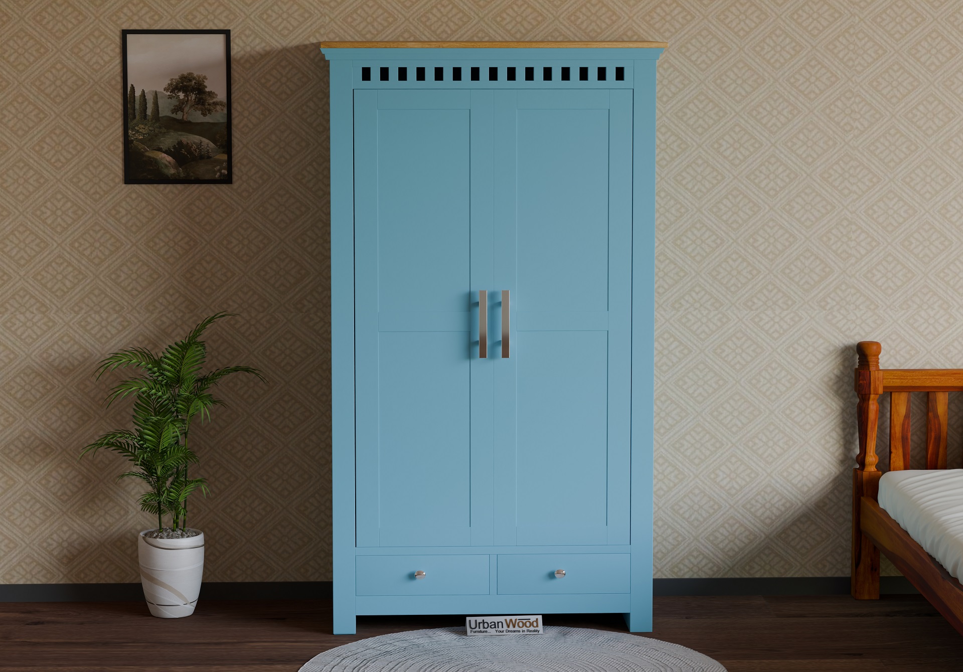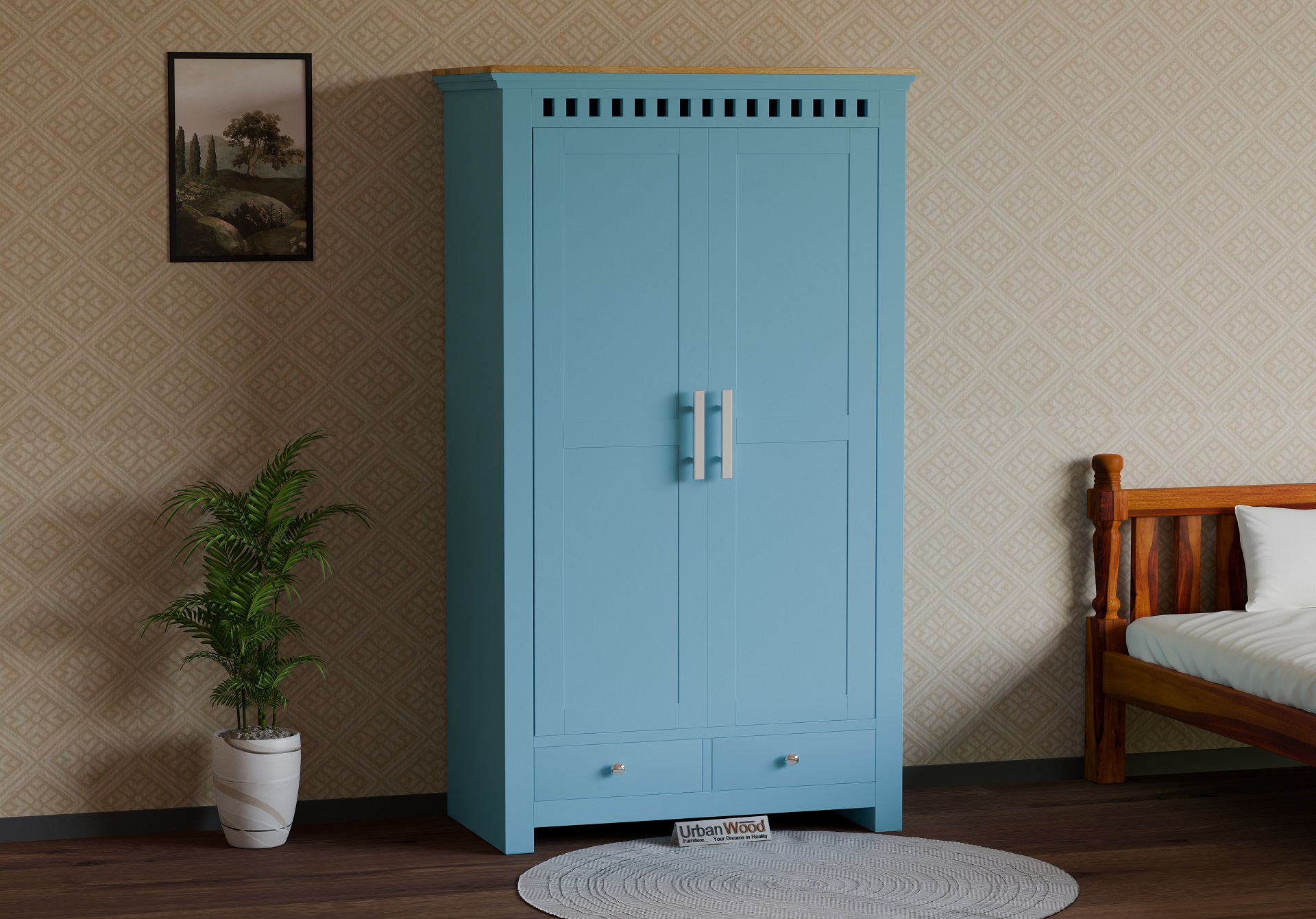 Generic Name -Grace Solid Wood Wardrobe (Sky Blue)
