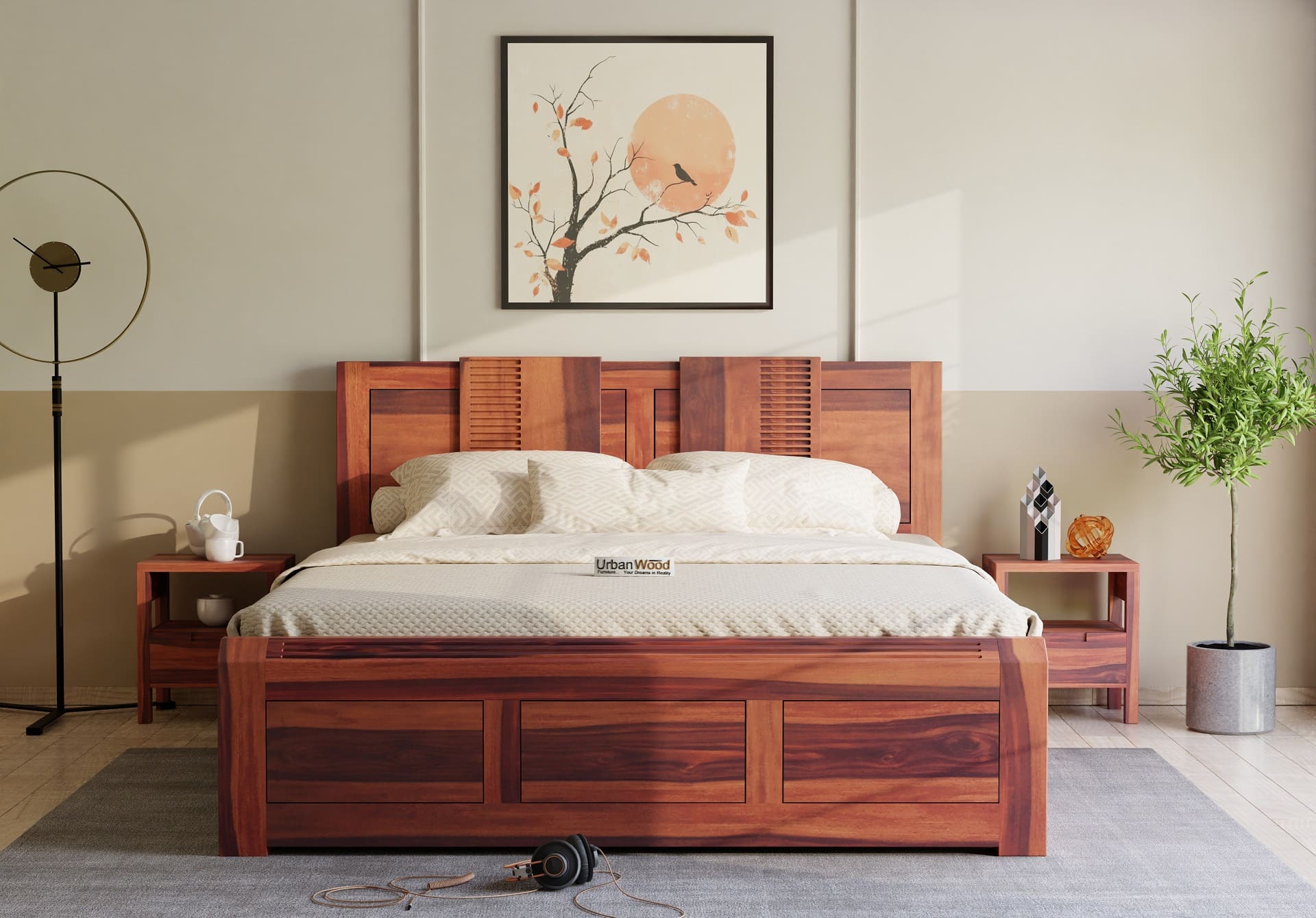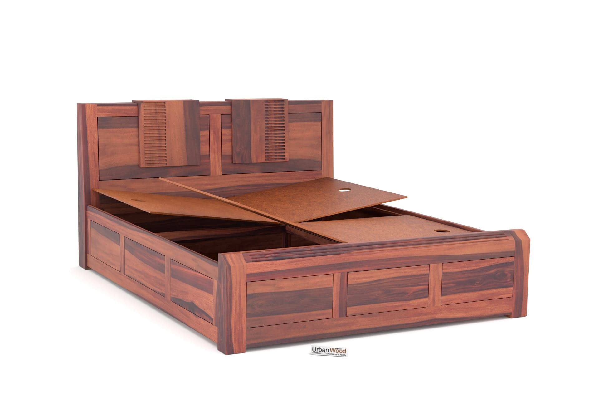 Norik Wooden Box Storage Bed (Queen Size, Teak Finish)