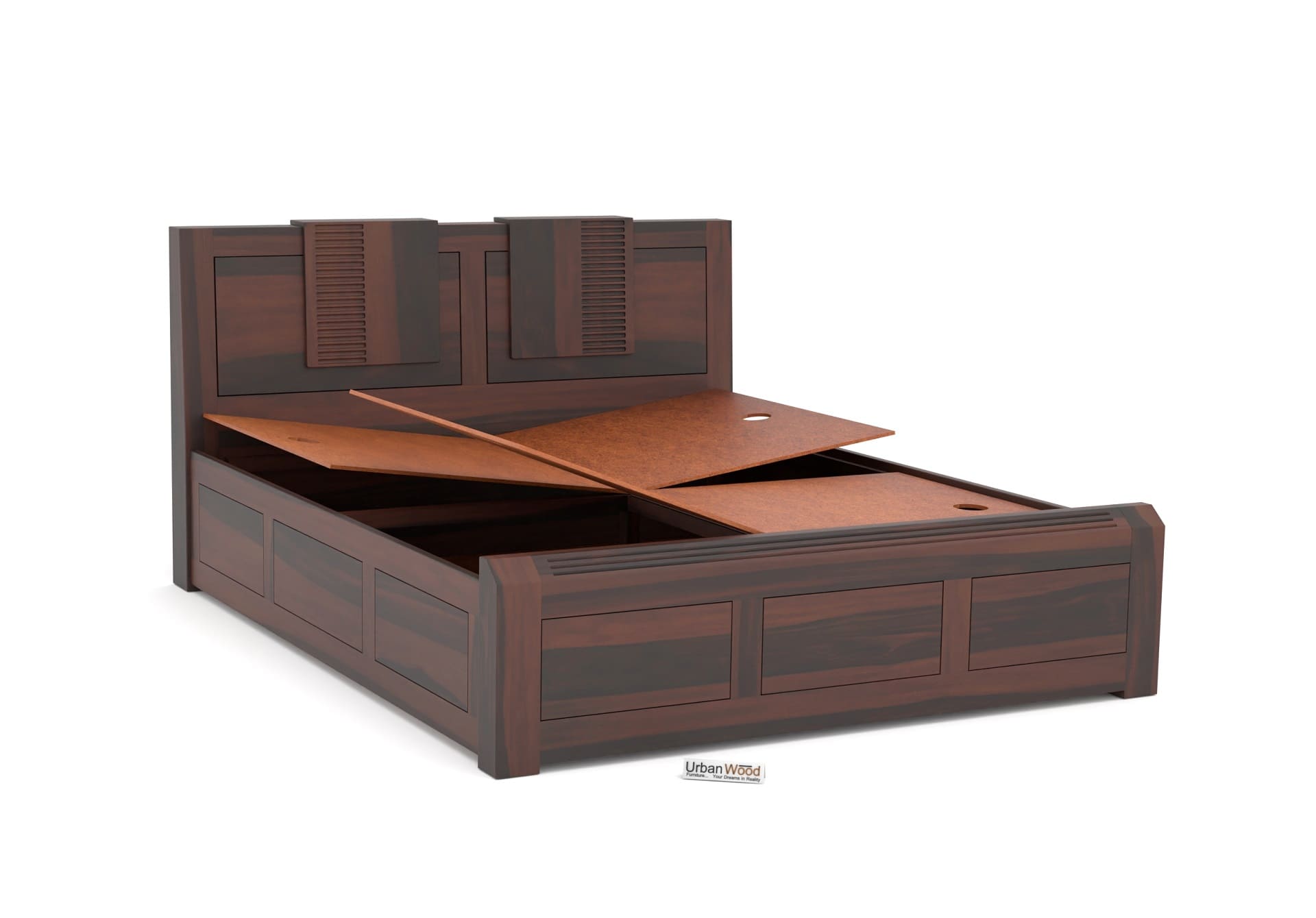Norik Wooden Box Storage Bed (Queen Size, Walnut Finish)