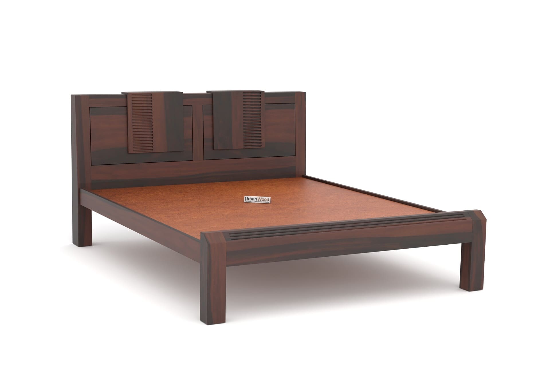 Norik Wooden Without Storage Bed (King Size, Walnut Finish)