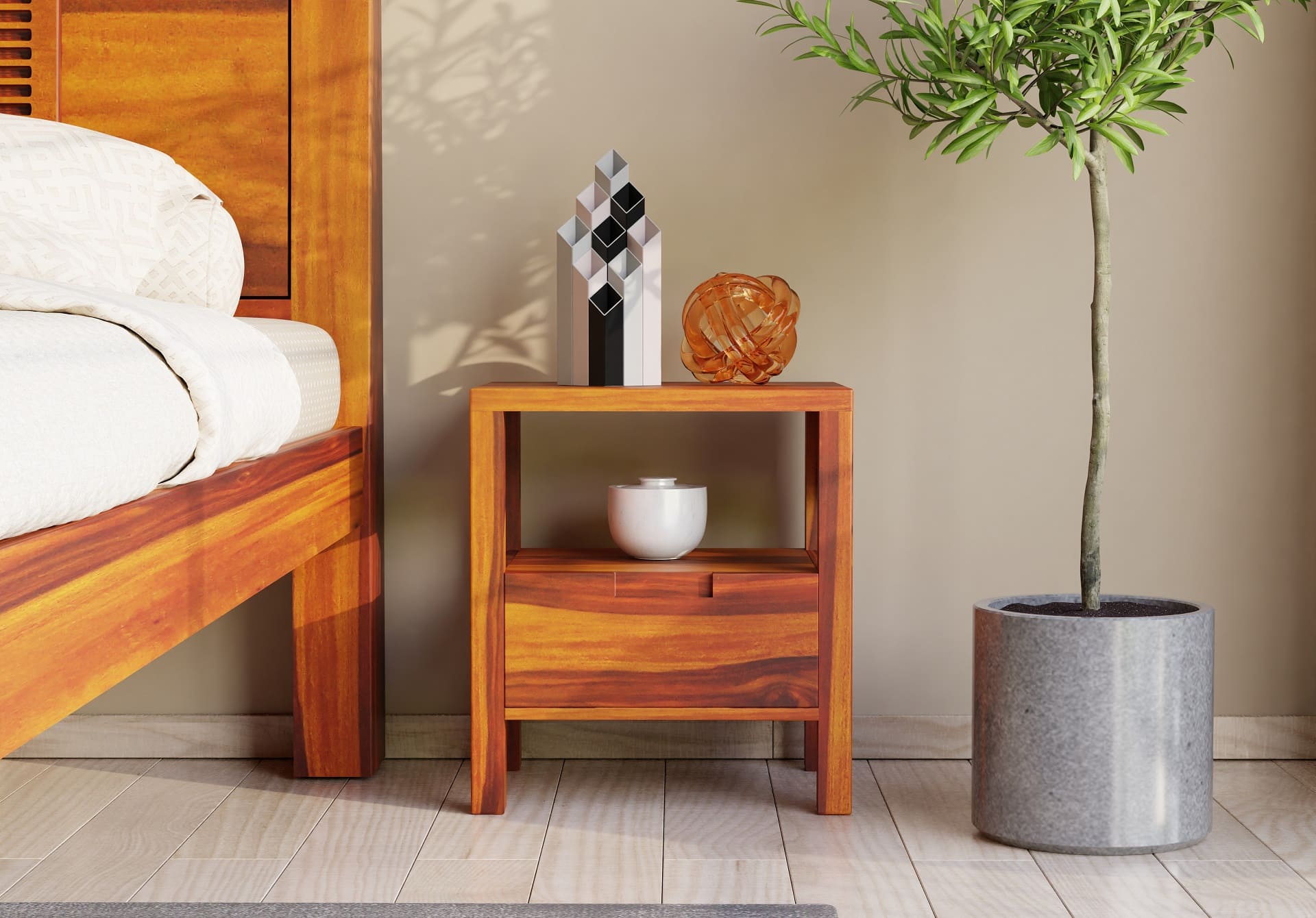 Generic Name -Ragnar Bedside Table (Honey Finish)