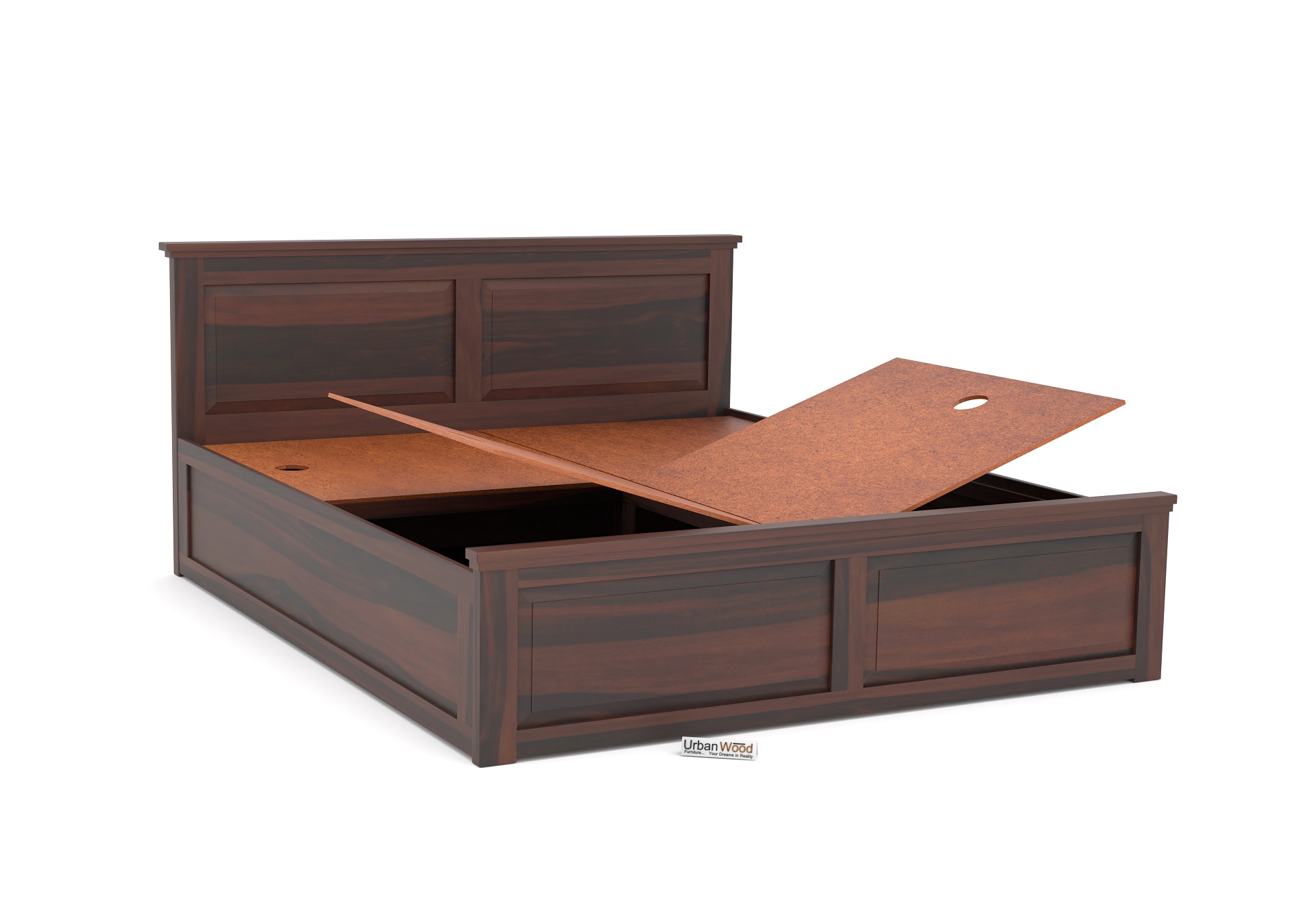 Ragnar Wooden Box Storage Bed (King Size, Walnut Finish)
