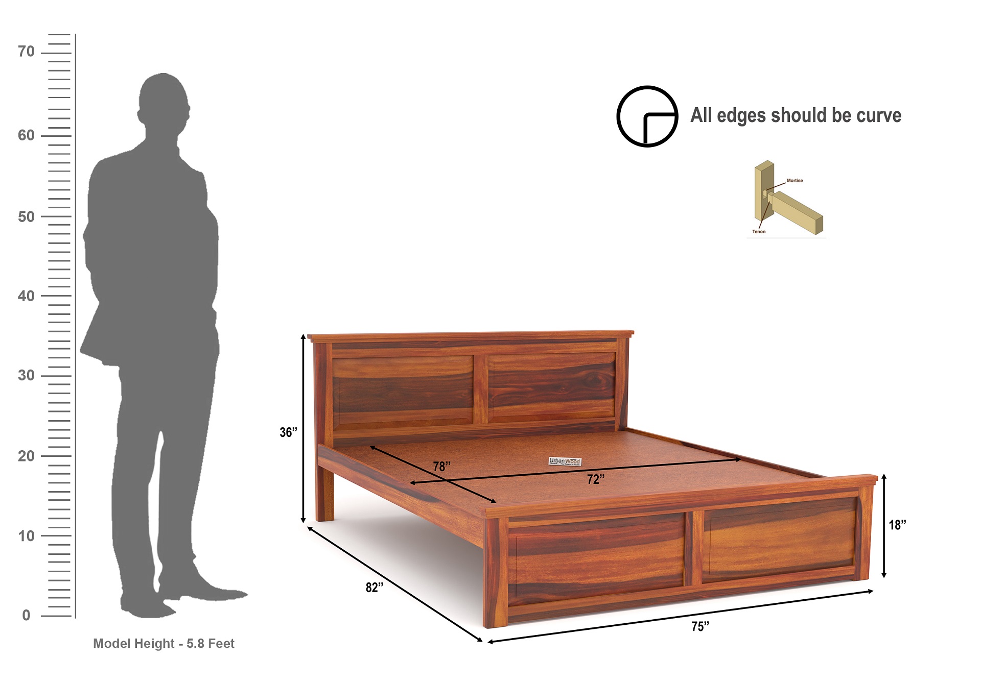 Generic Name -Ragnar Wooden Without Storage Bed (King Size, Honey Finish)