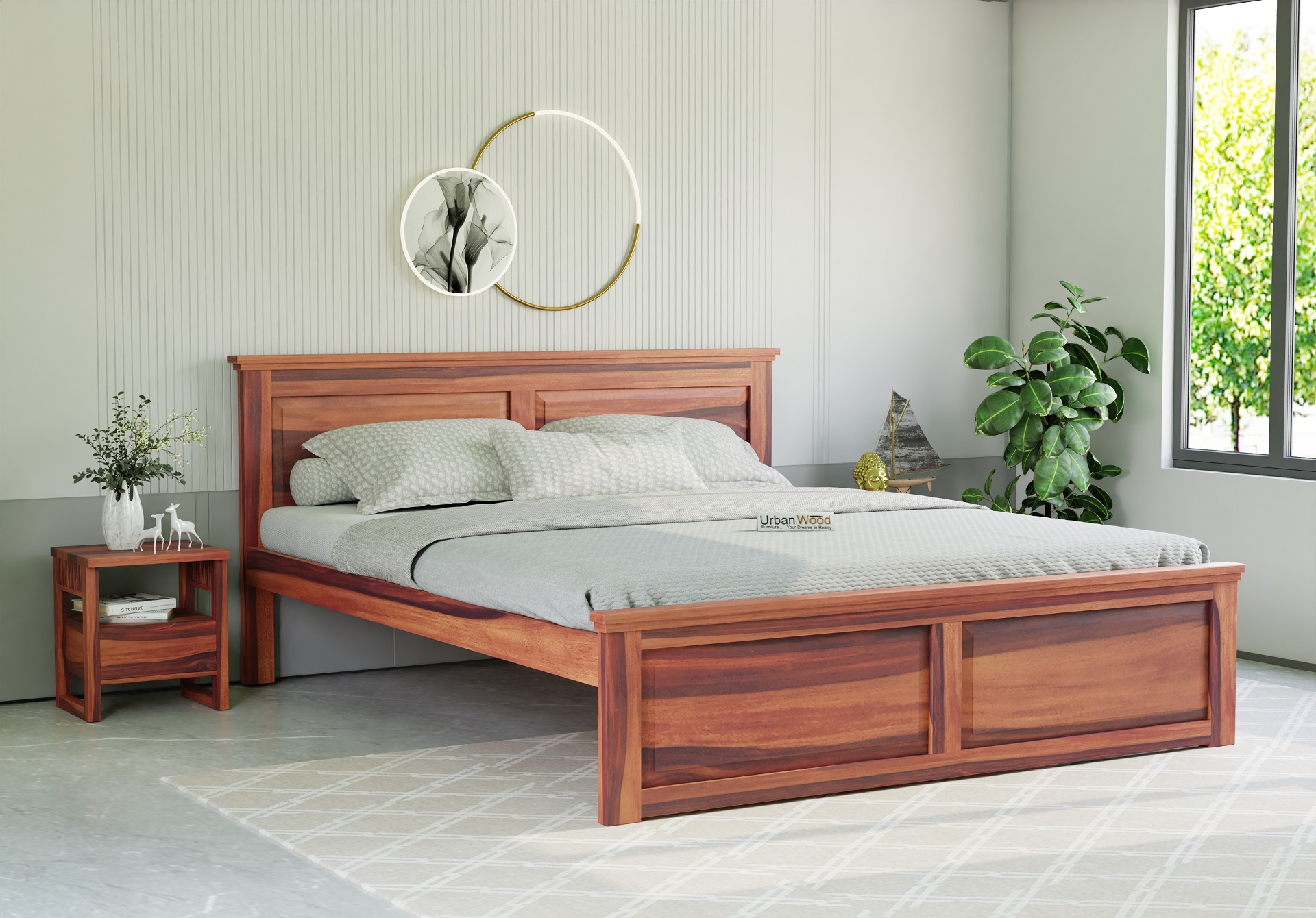 Ragnar Wooden Without Storage Bed (Queen Size, Teak Finish)