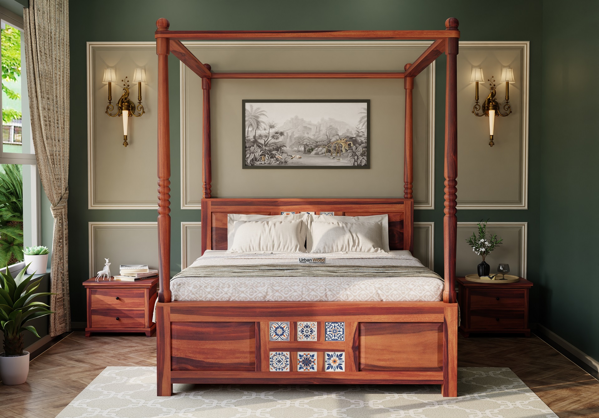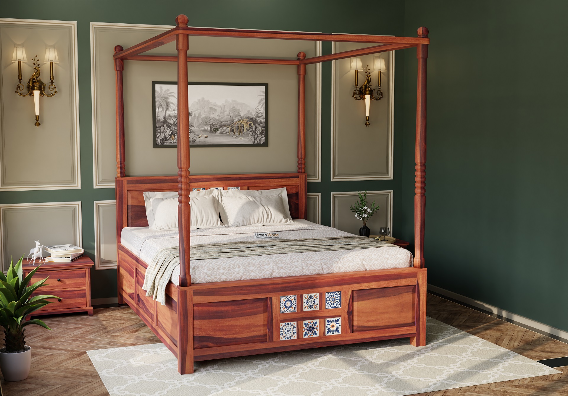 Relay Poster Bed With Box Storage (King Size, Teak Finish)