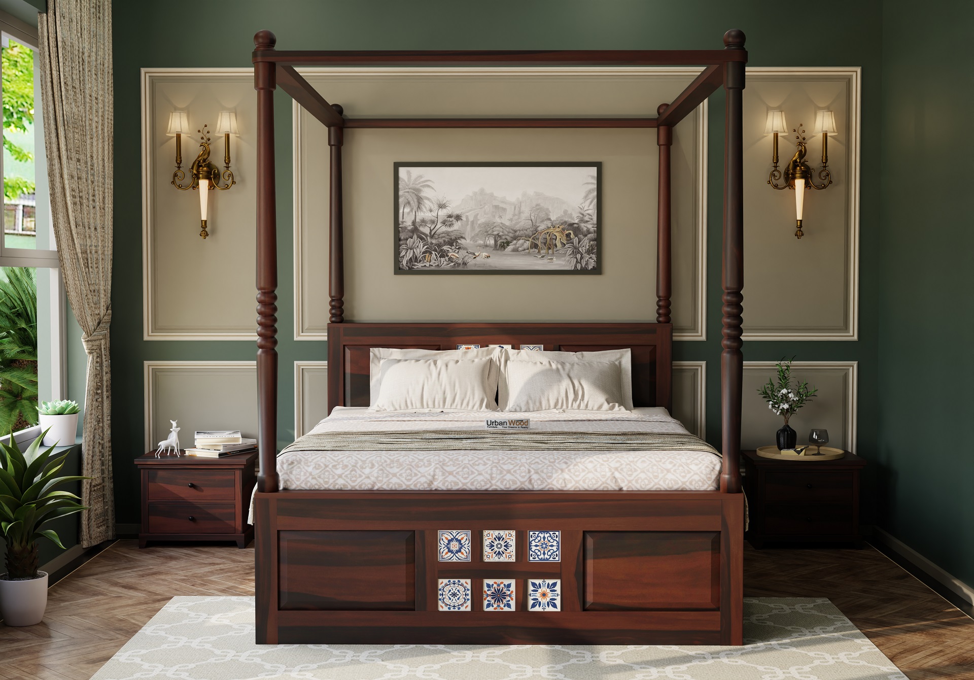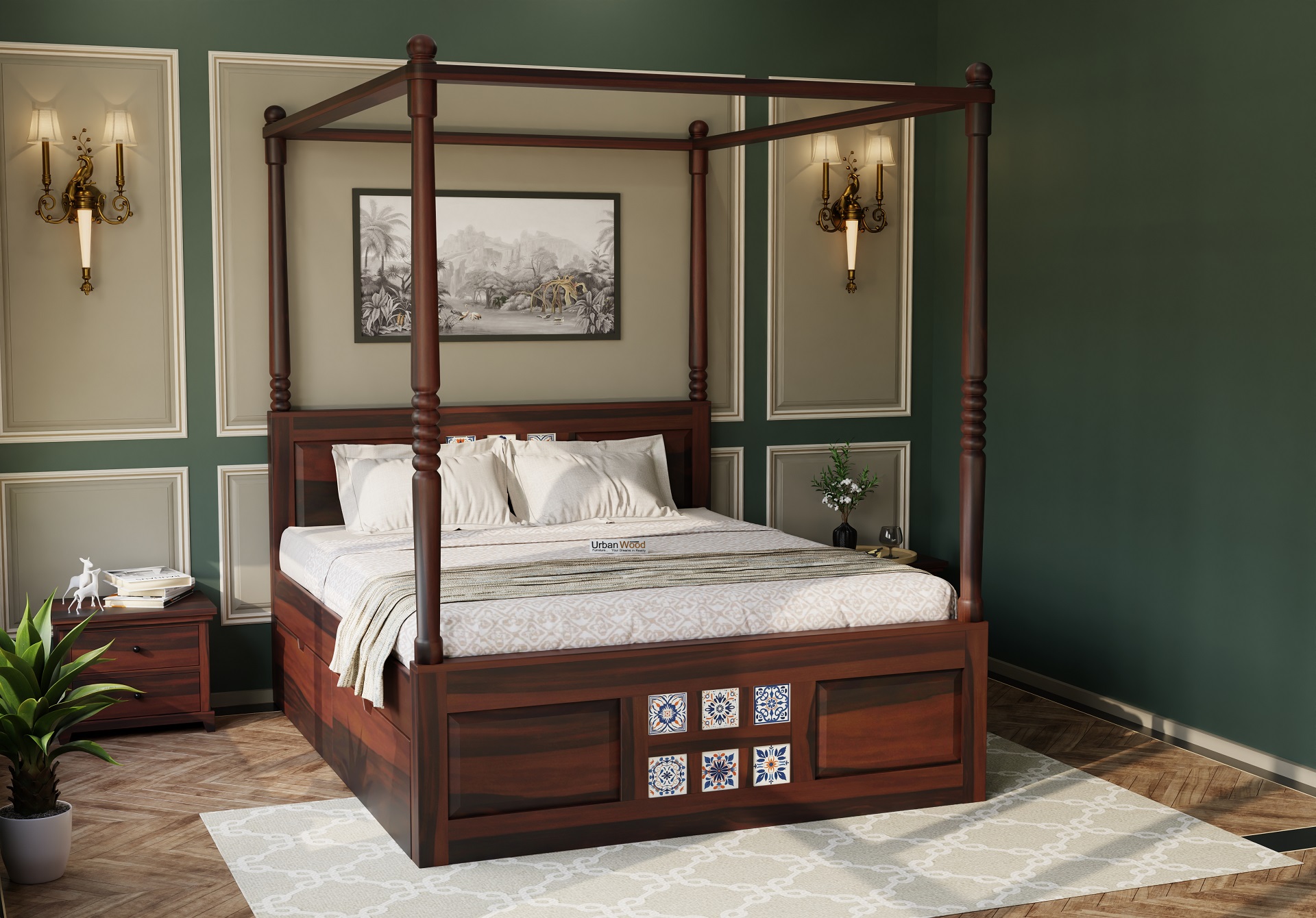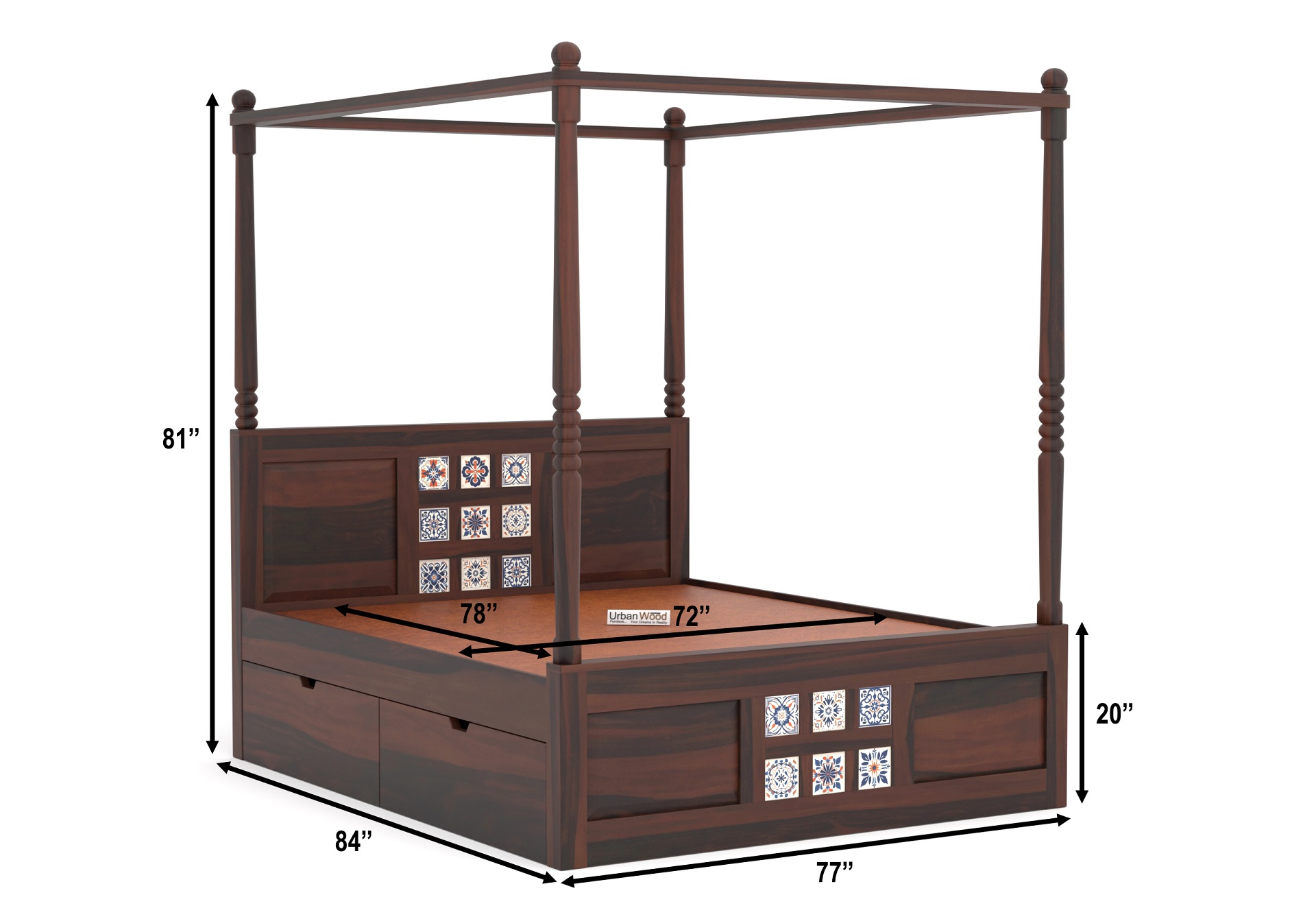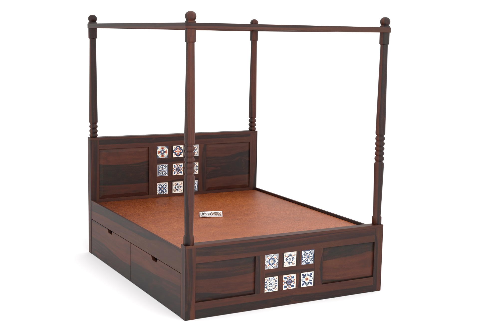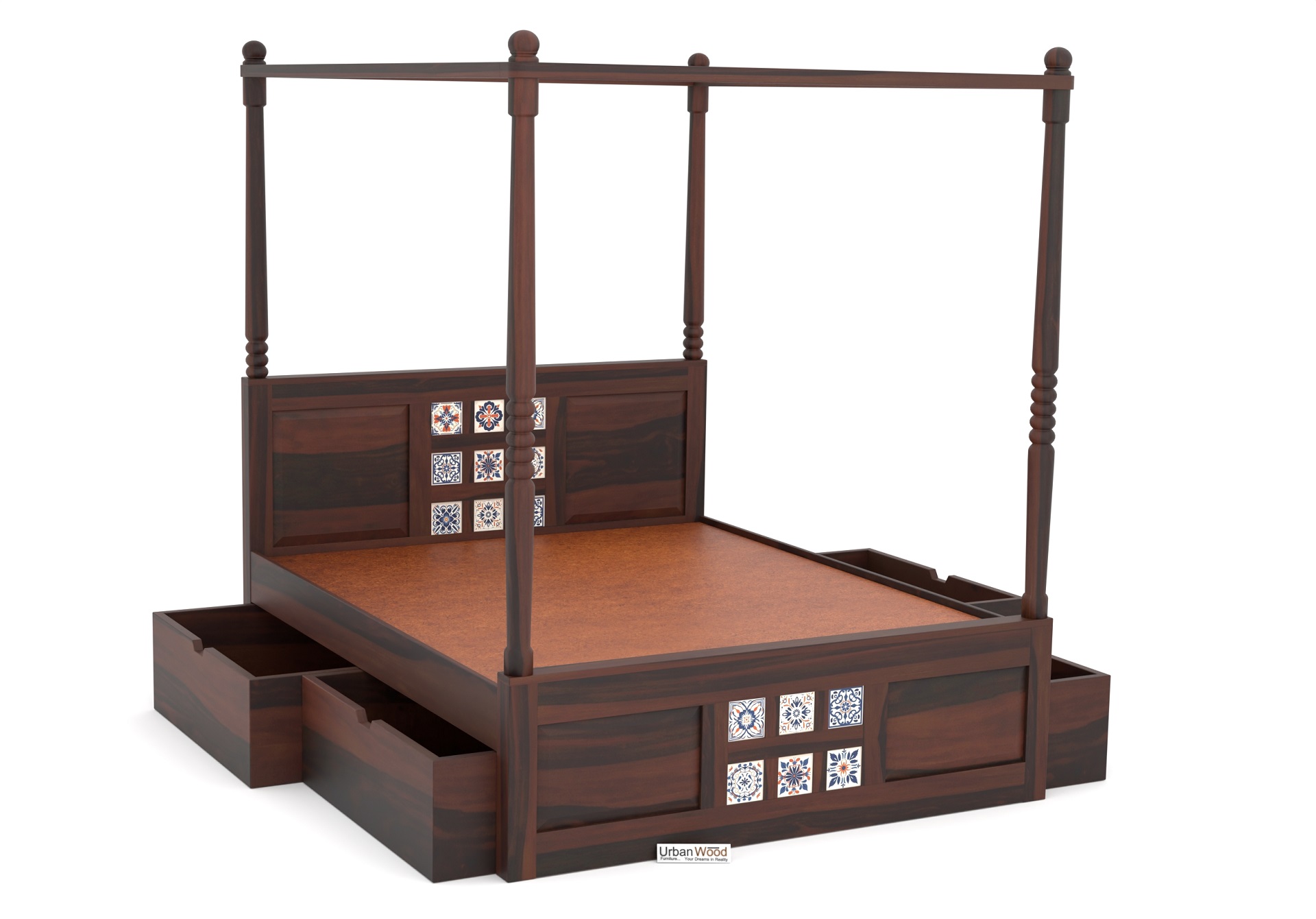 Relay Poster Bed With Drawer Storage (King Size, Walnut Finish)