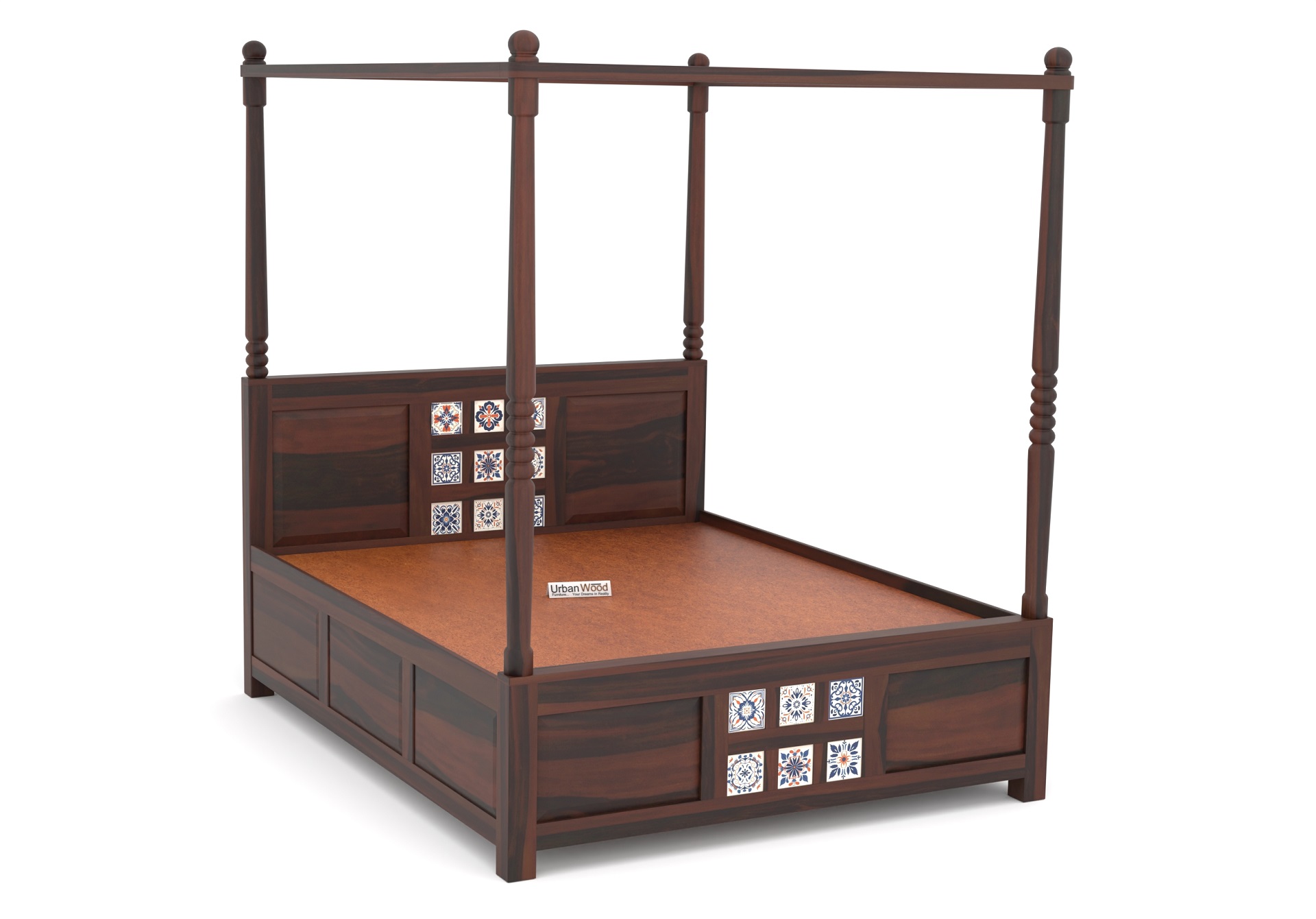 Relay Poster Bed Without Storage (King Size, Walnut Finish)