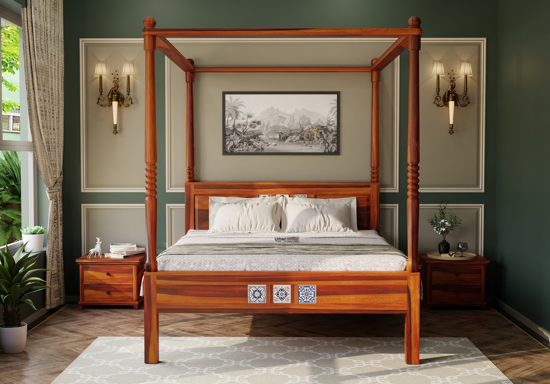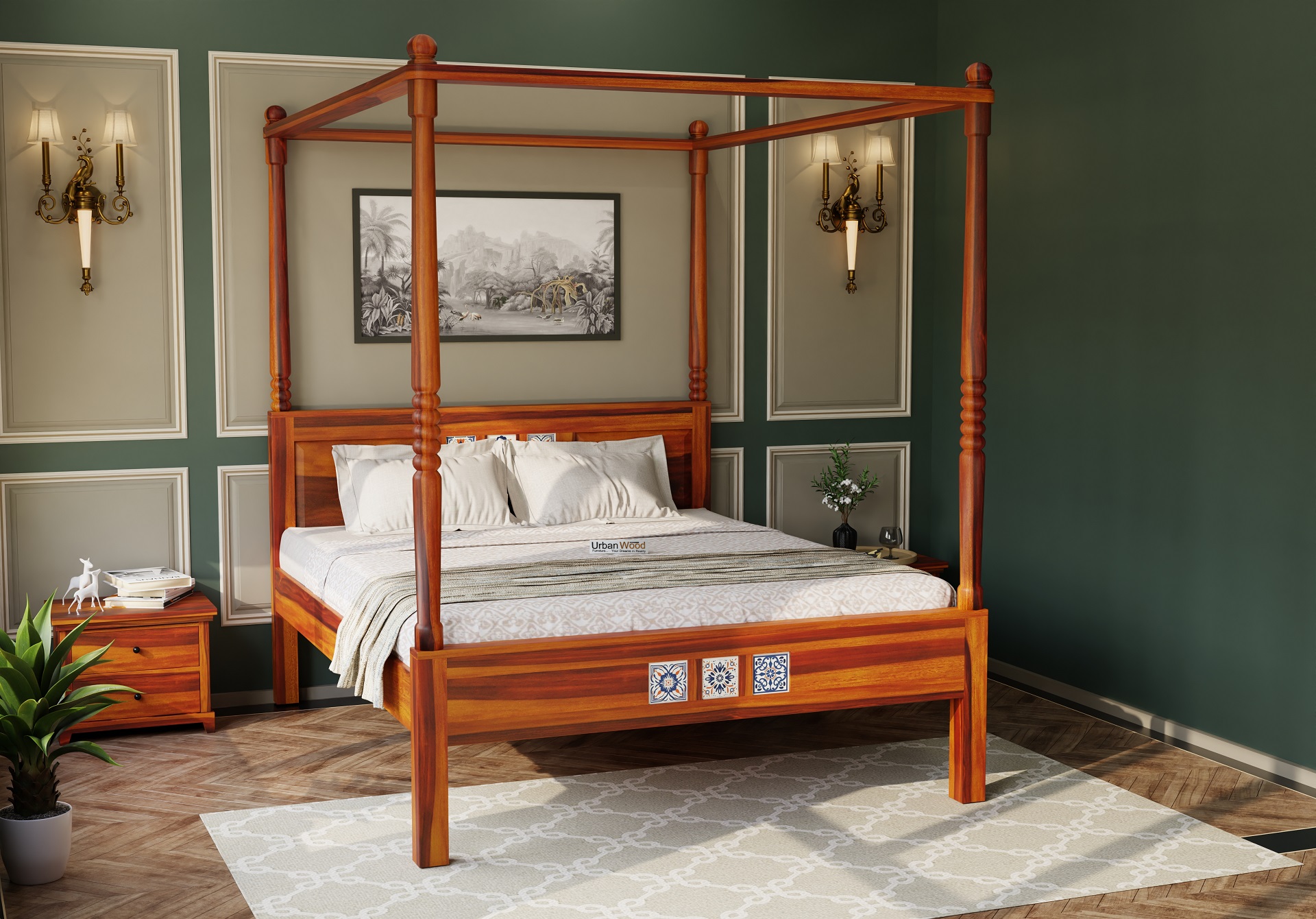Relay Poster Bed Without Storage (Queen Size, Honey Finish)