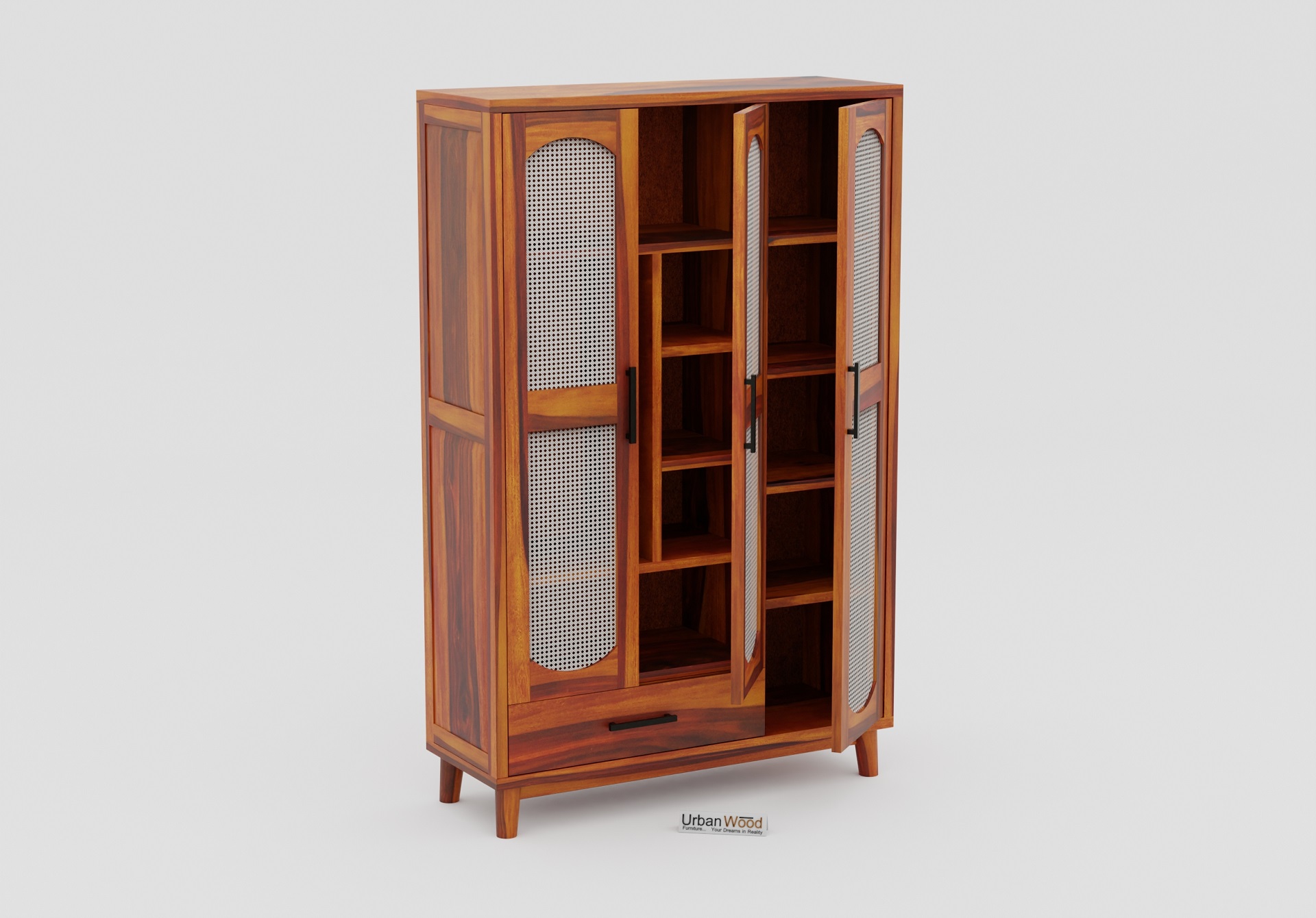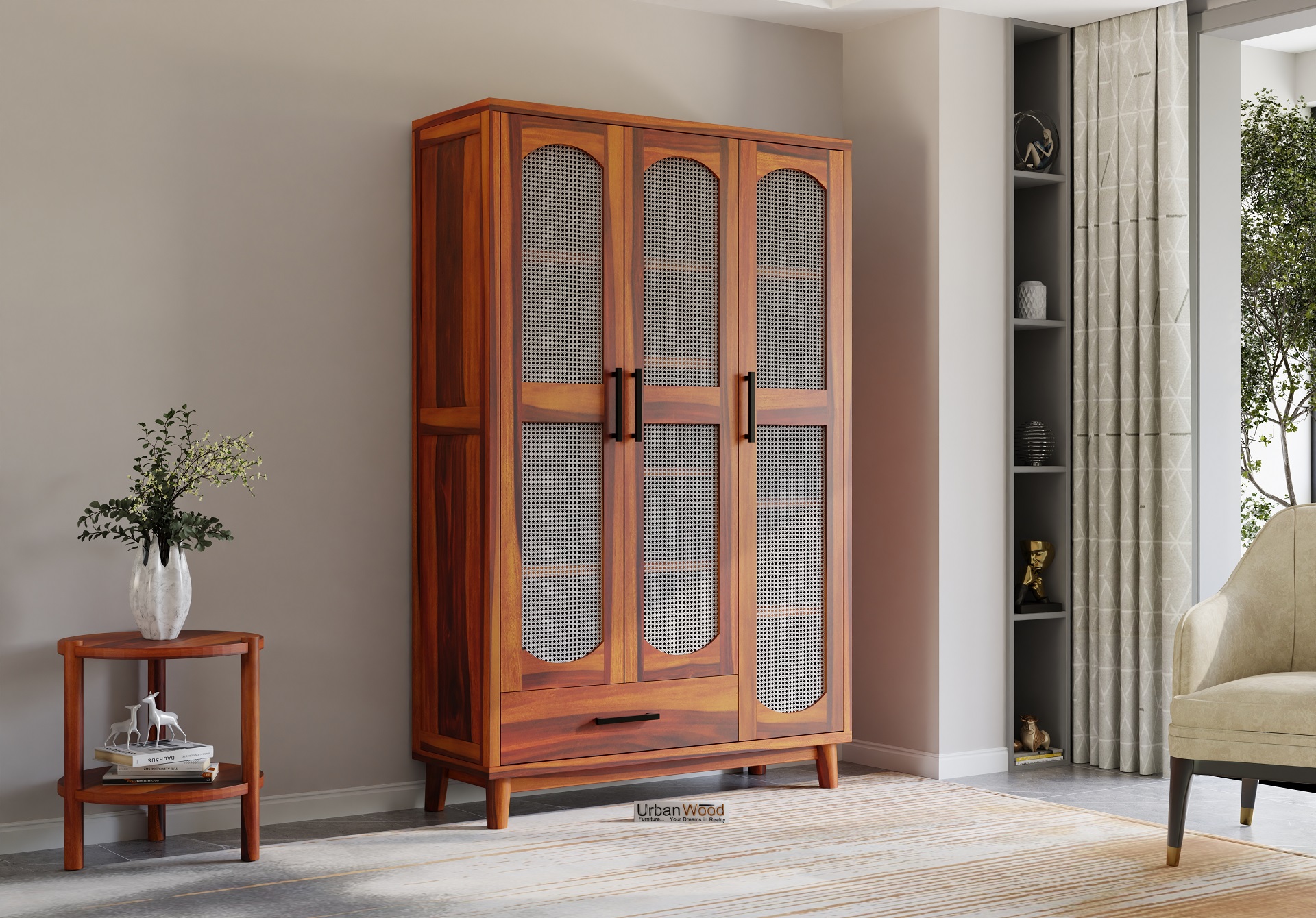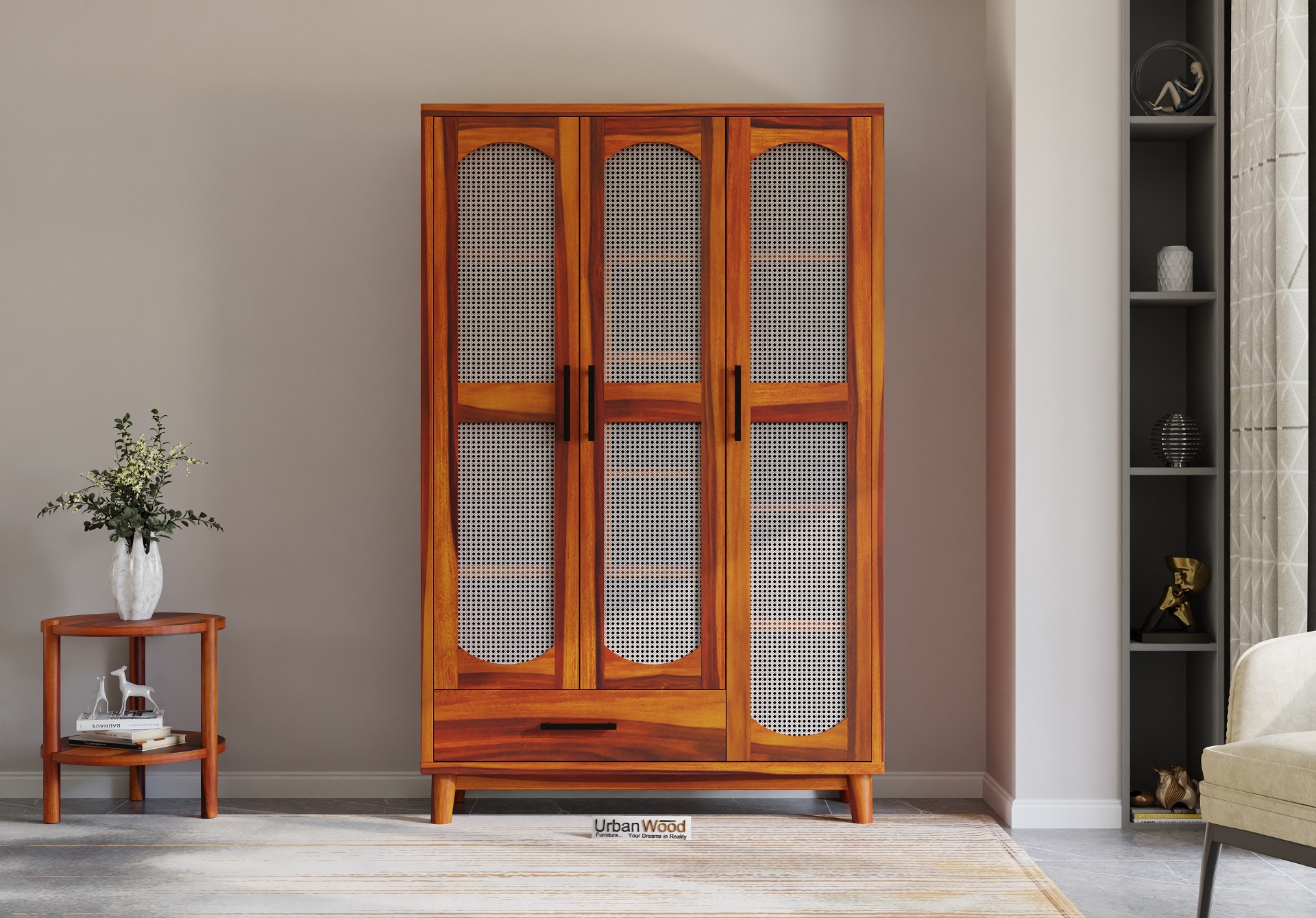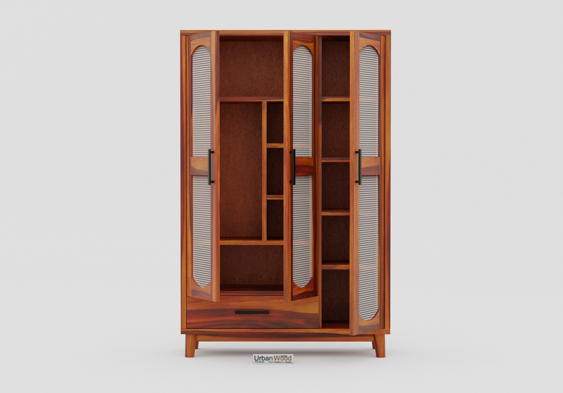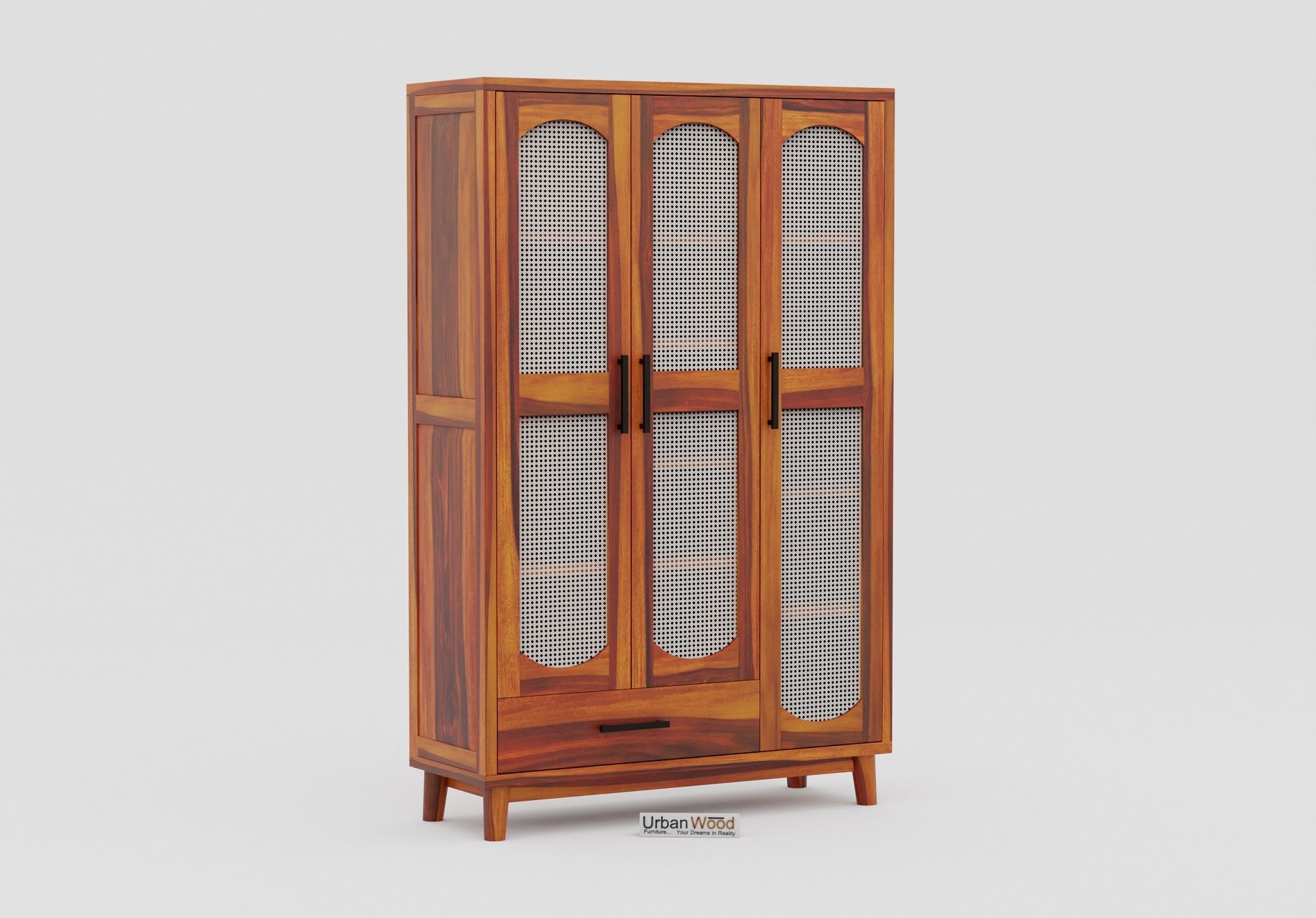 Specter 3 Door Wooden Wardrobe (Honey Finish)