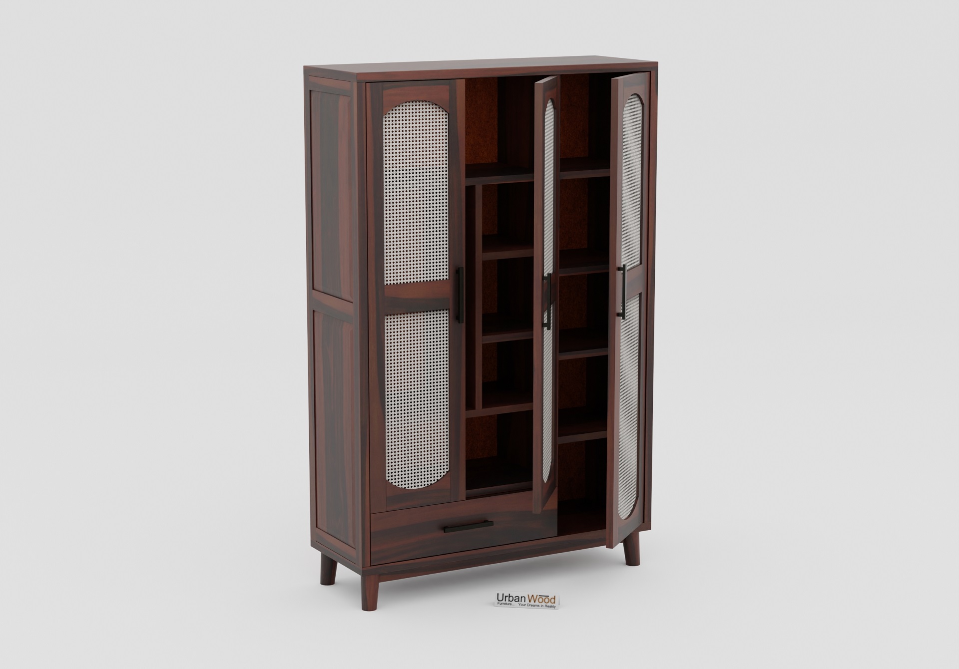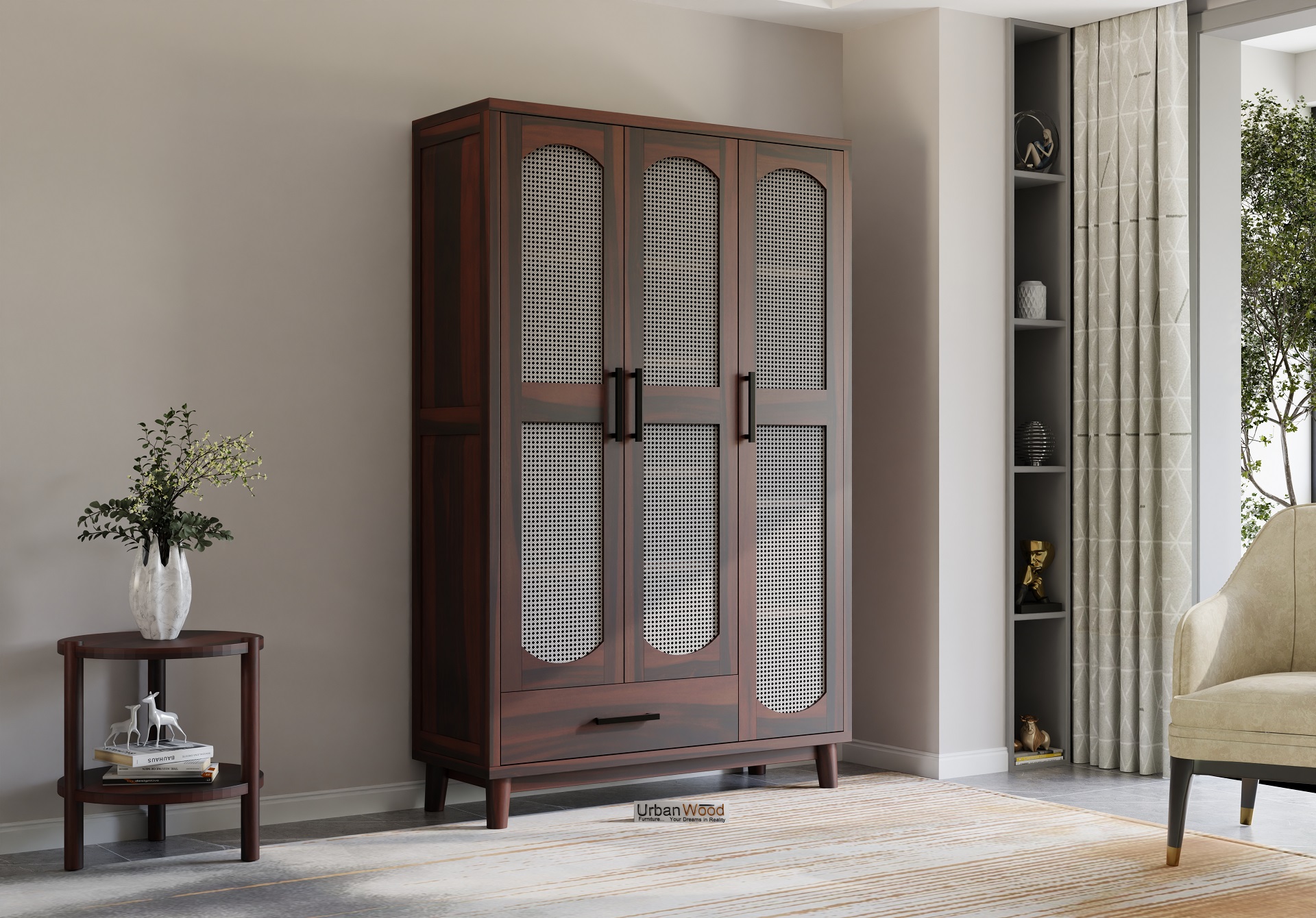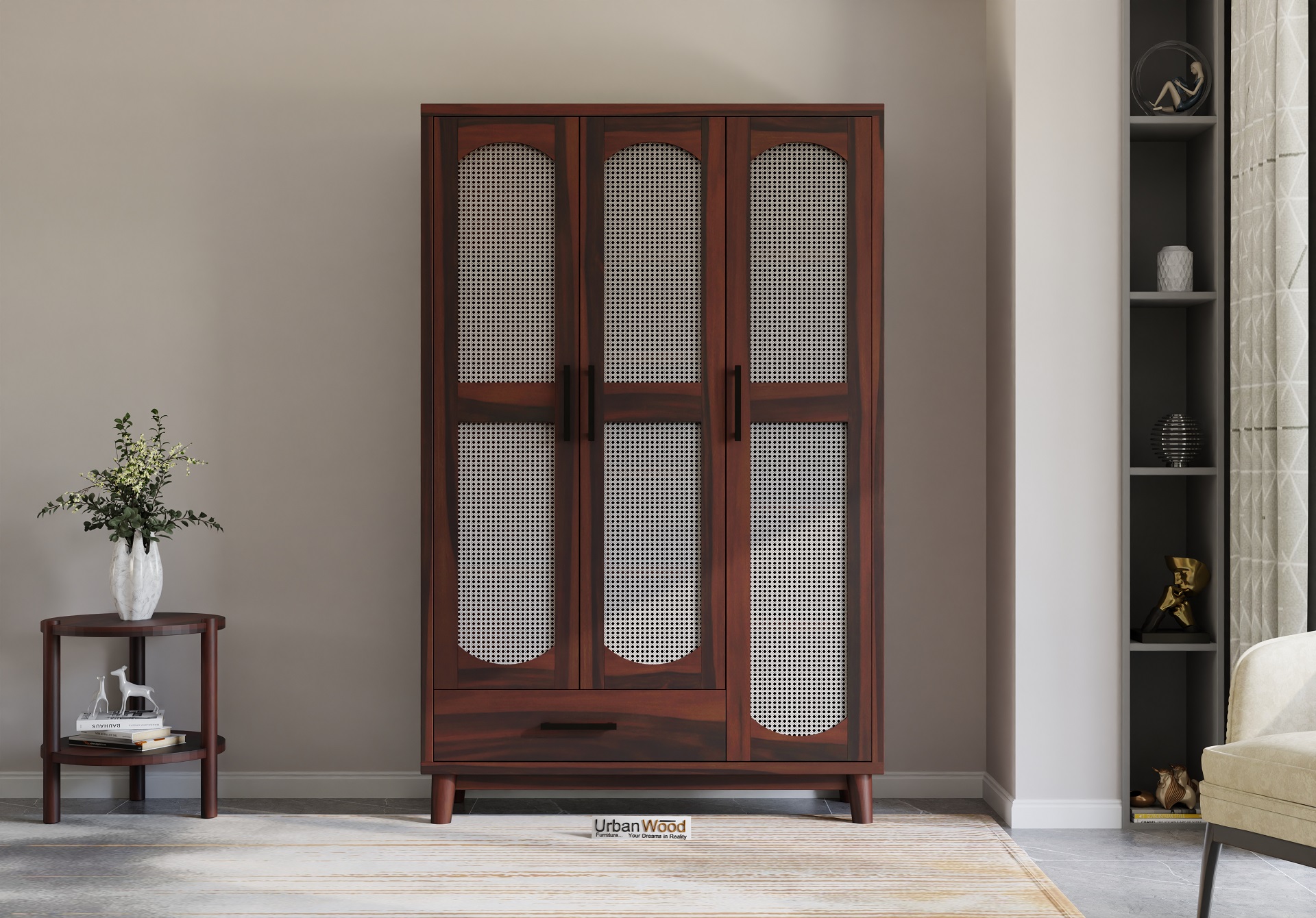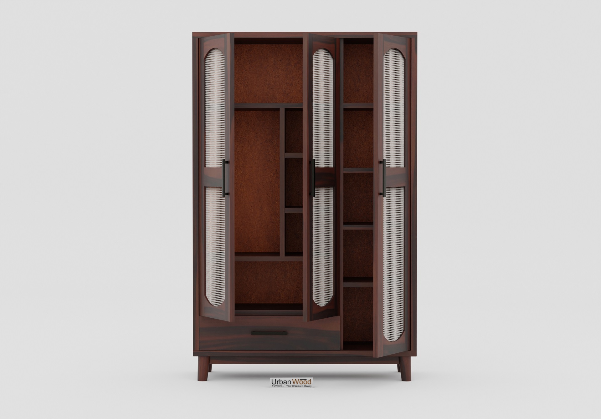 Specter 3 Door Wooden Wardrobe (Walnut Finish)