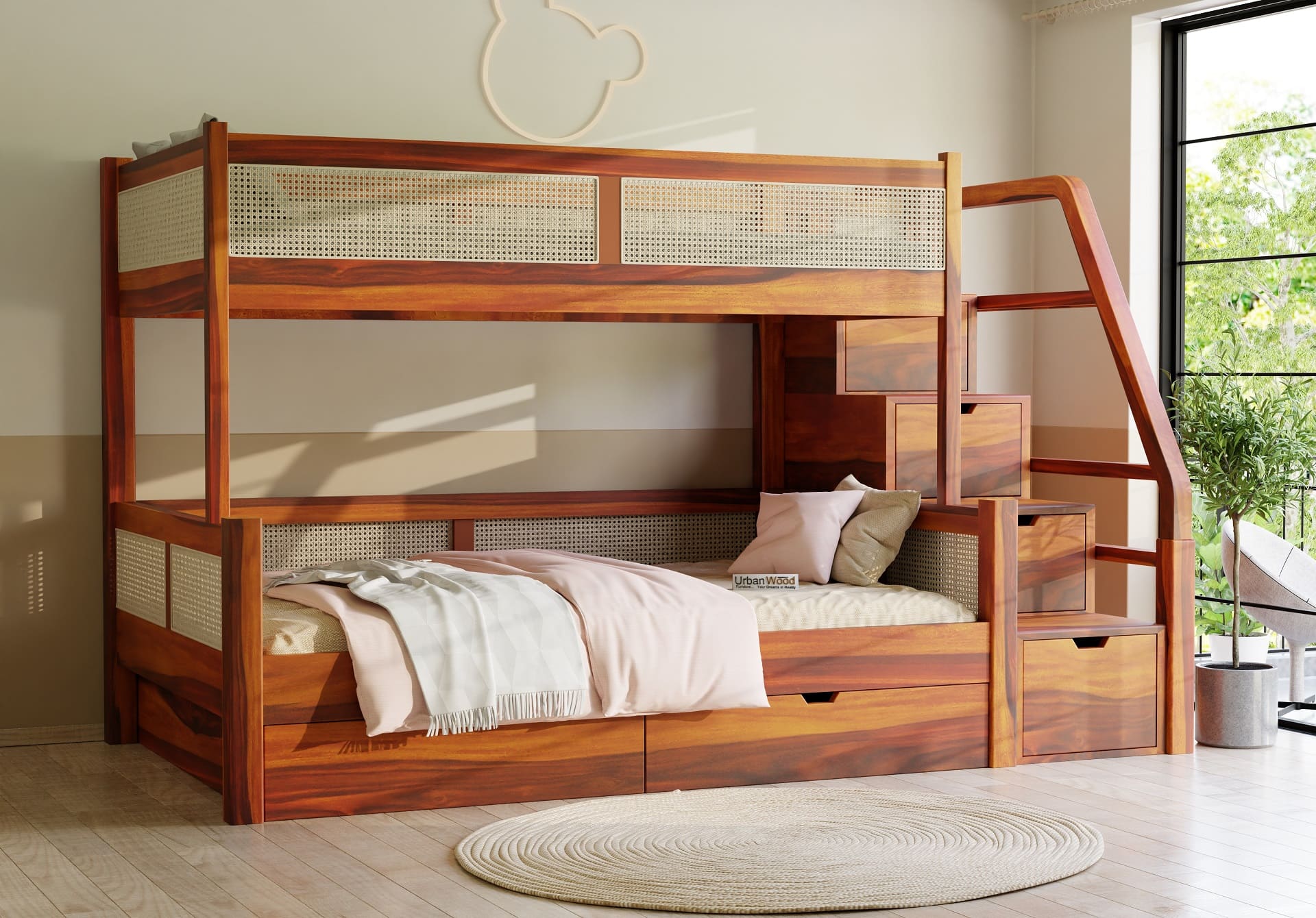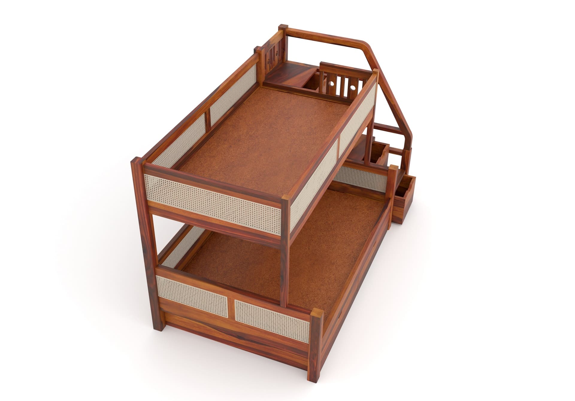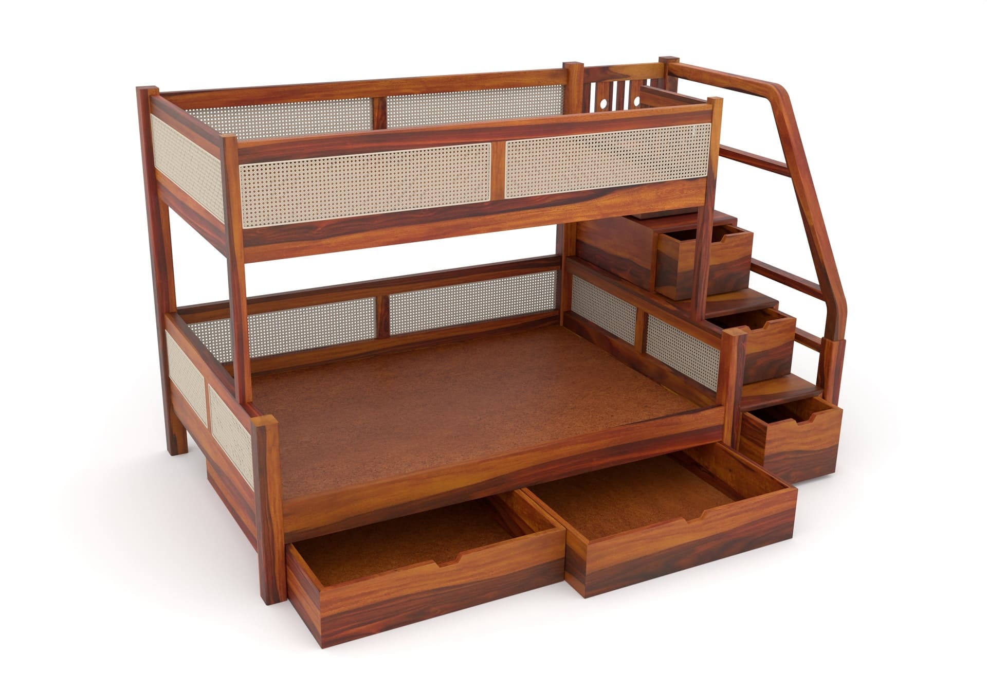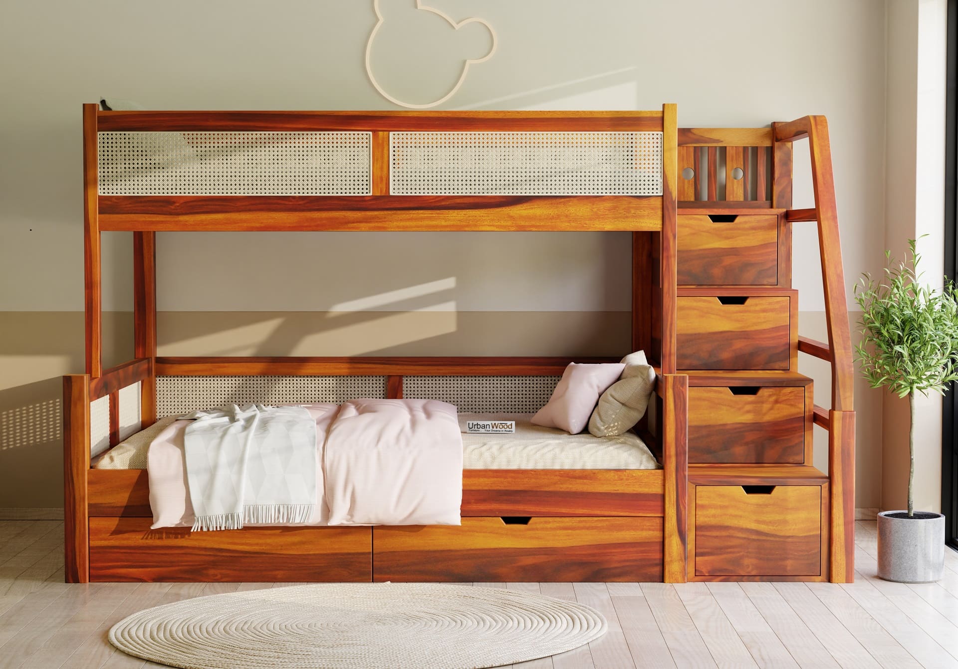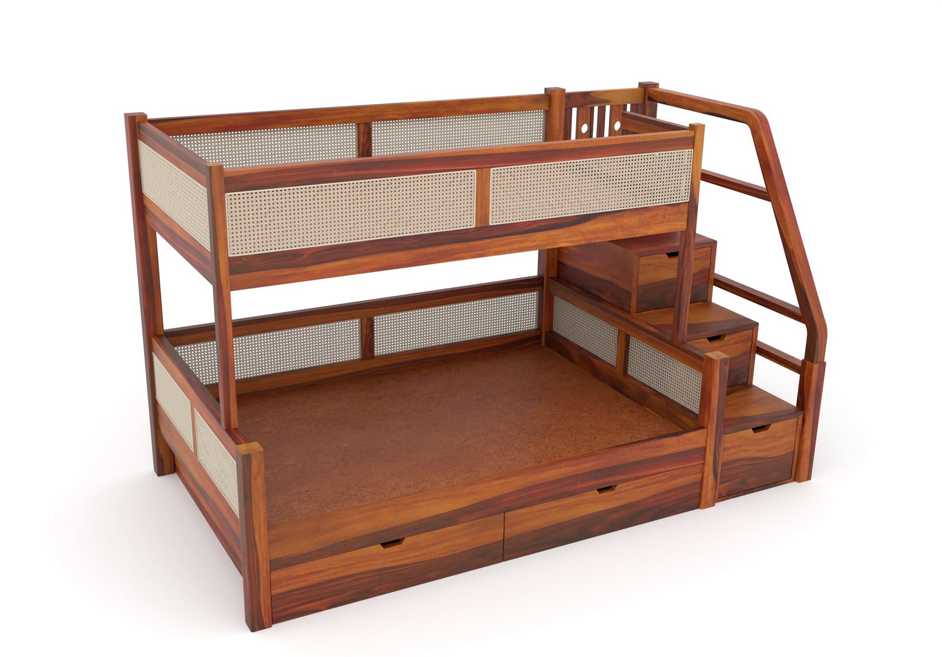 Stark Bunk Bed With Cane And Drawer Storage (Honey Finish)