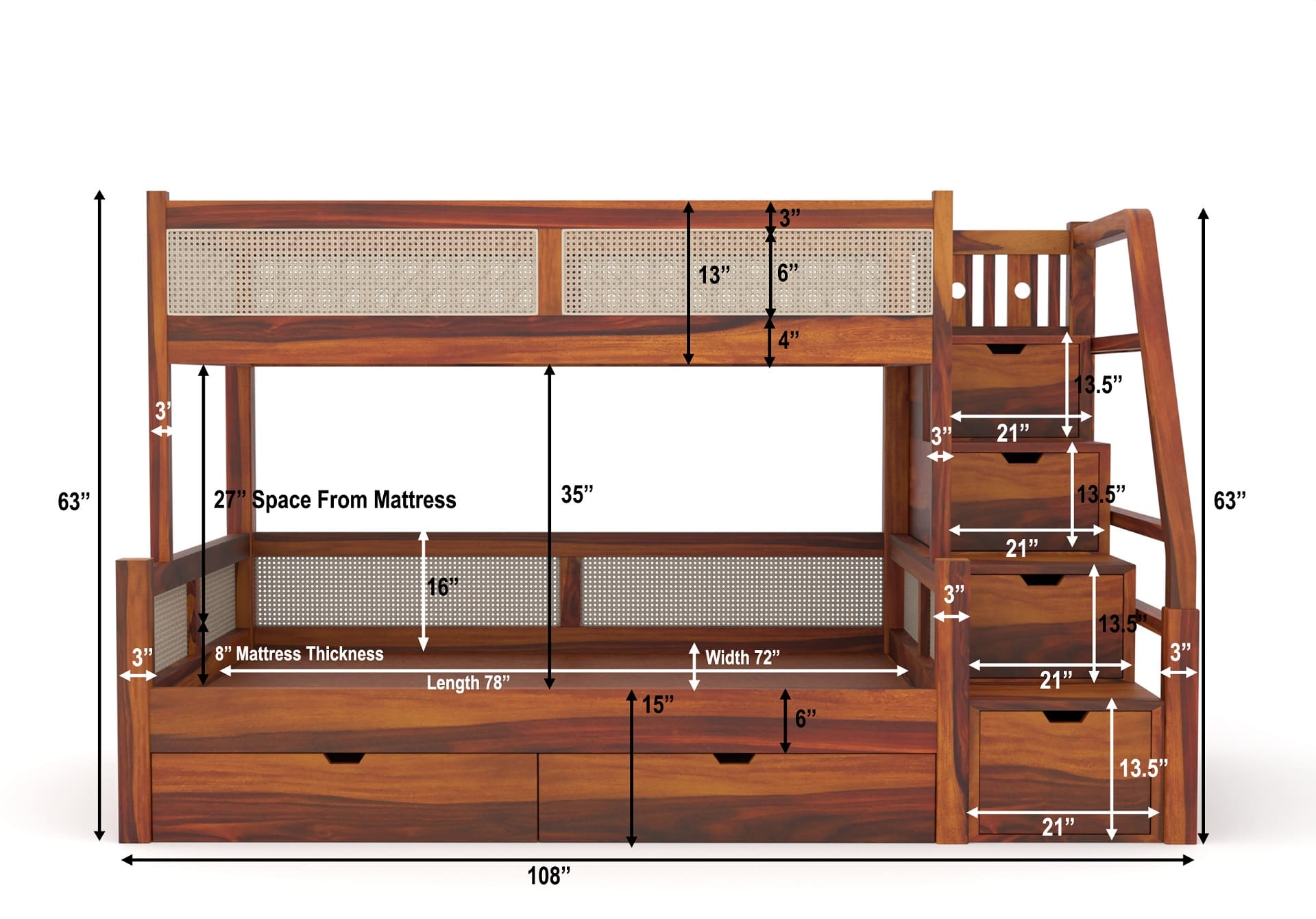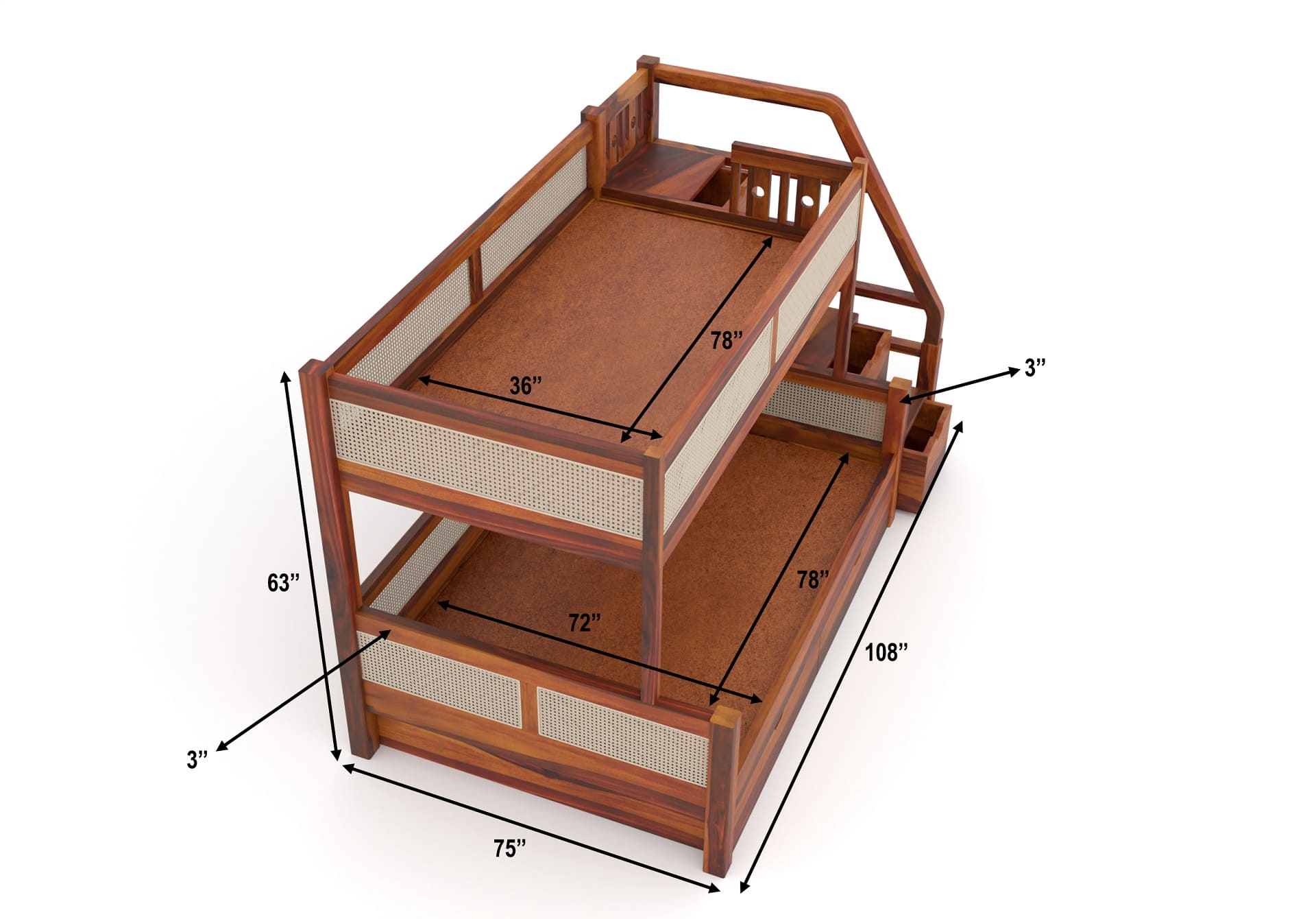 Generic Name -Stark Bunk Bed With Cane And Drawer Storage (Honey Finish)