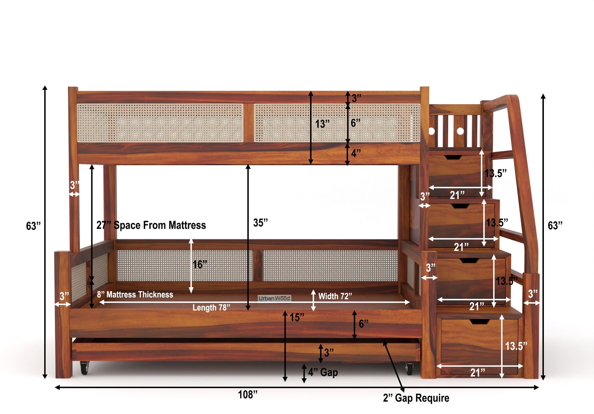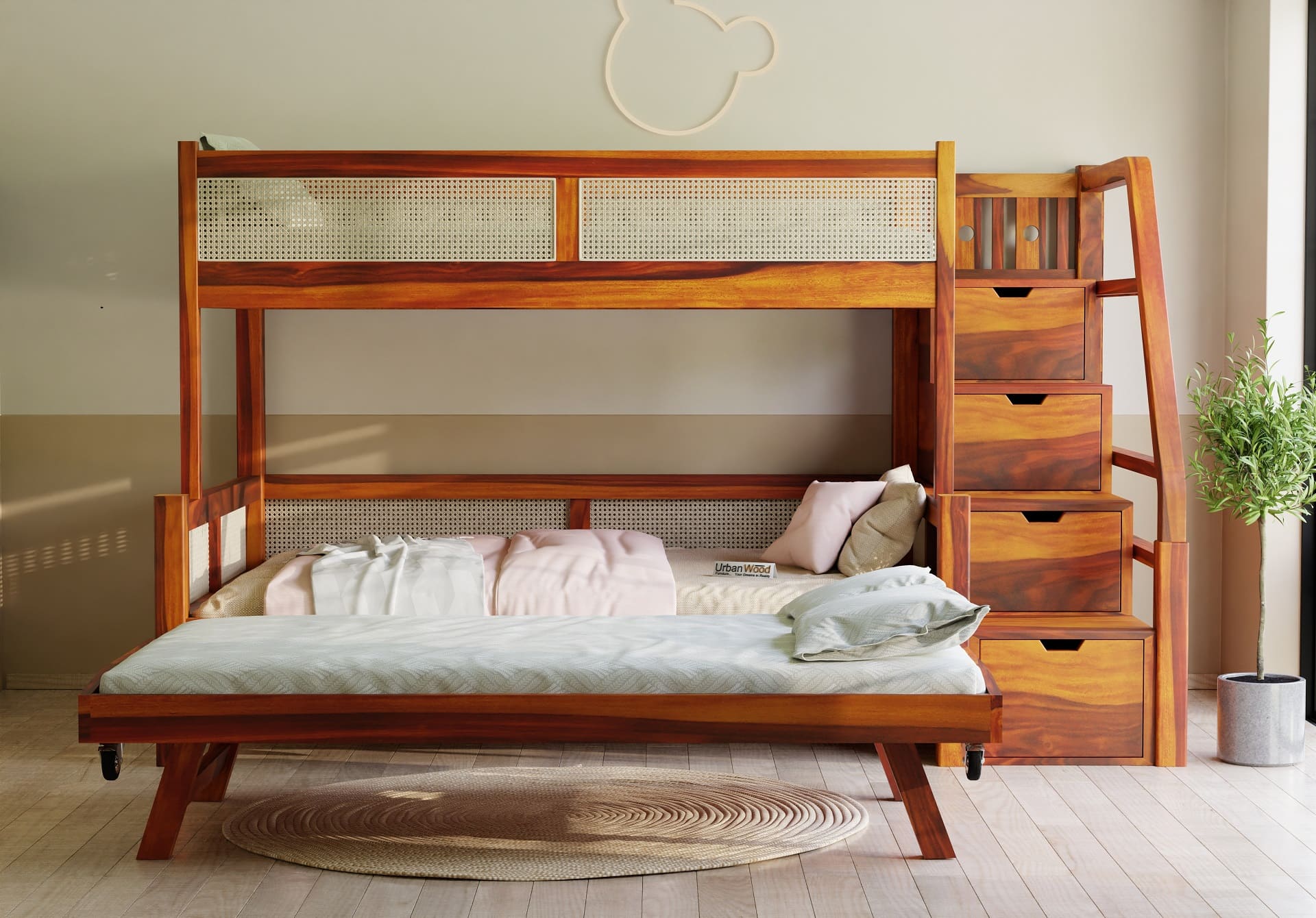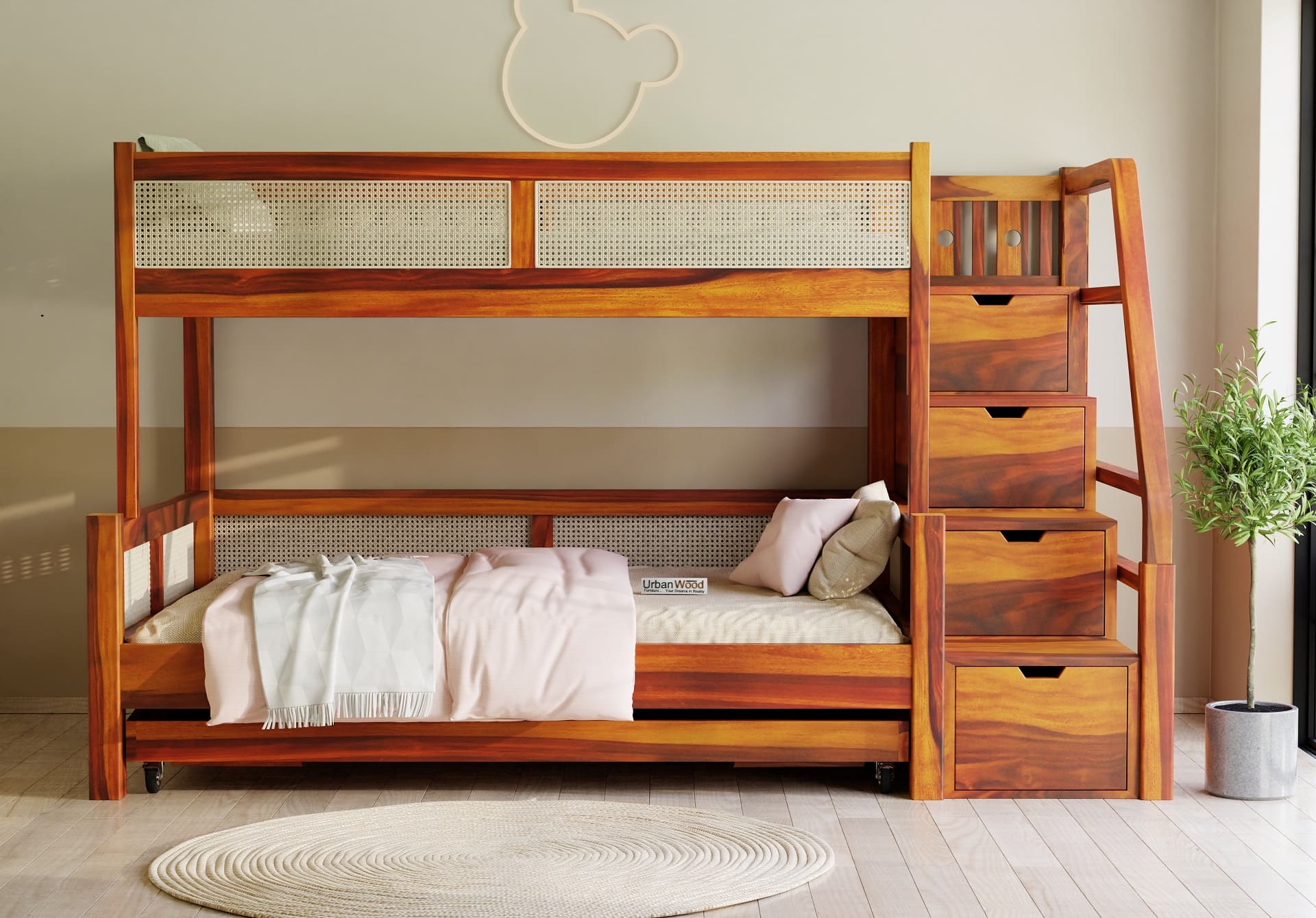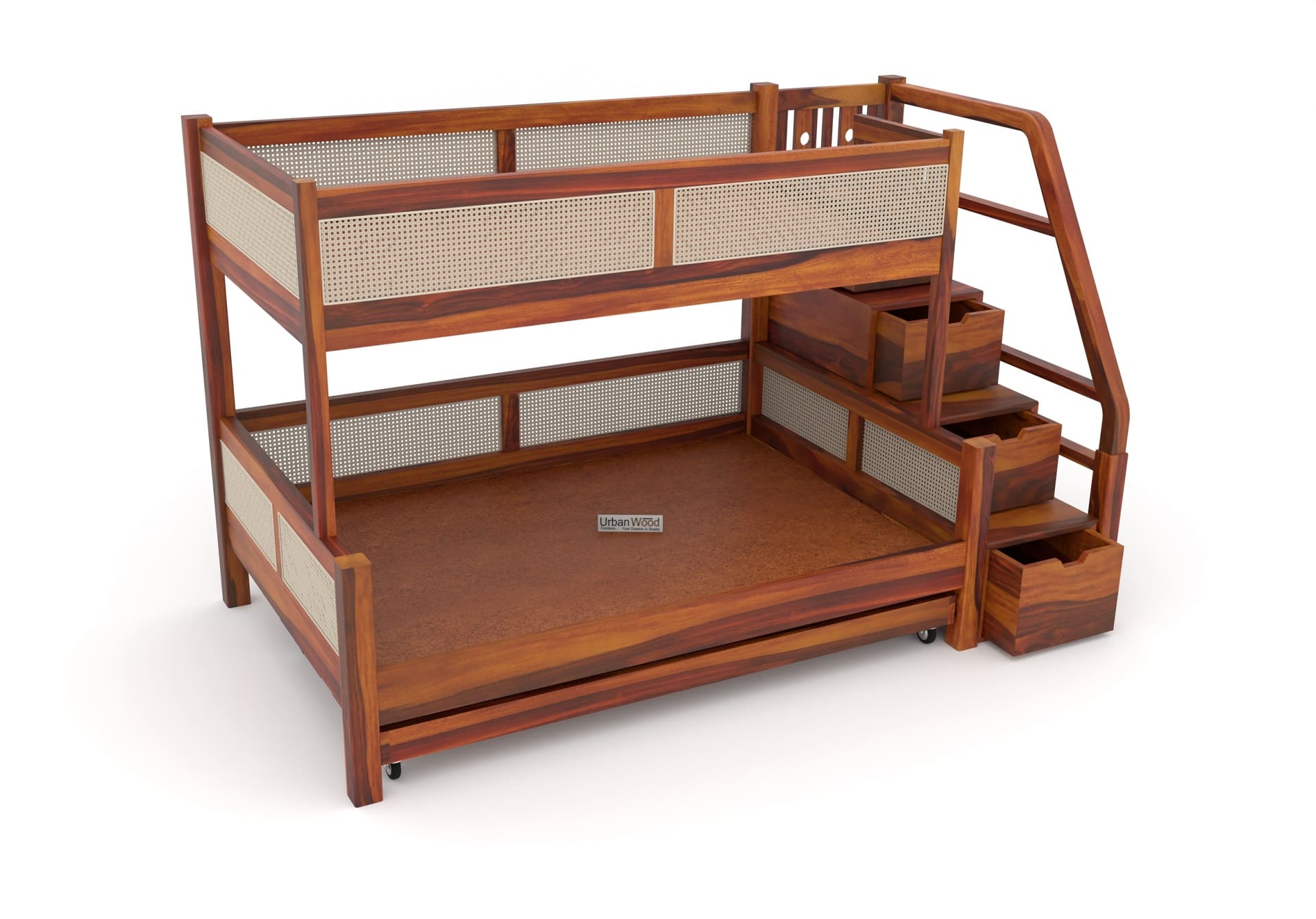 Generic Name -Stark Bunk Bed With Cane And Trundle (Honey Finish)