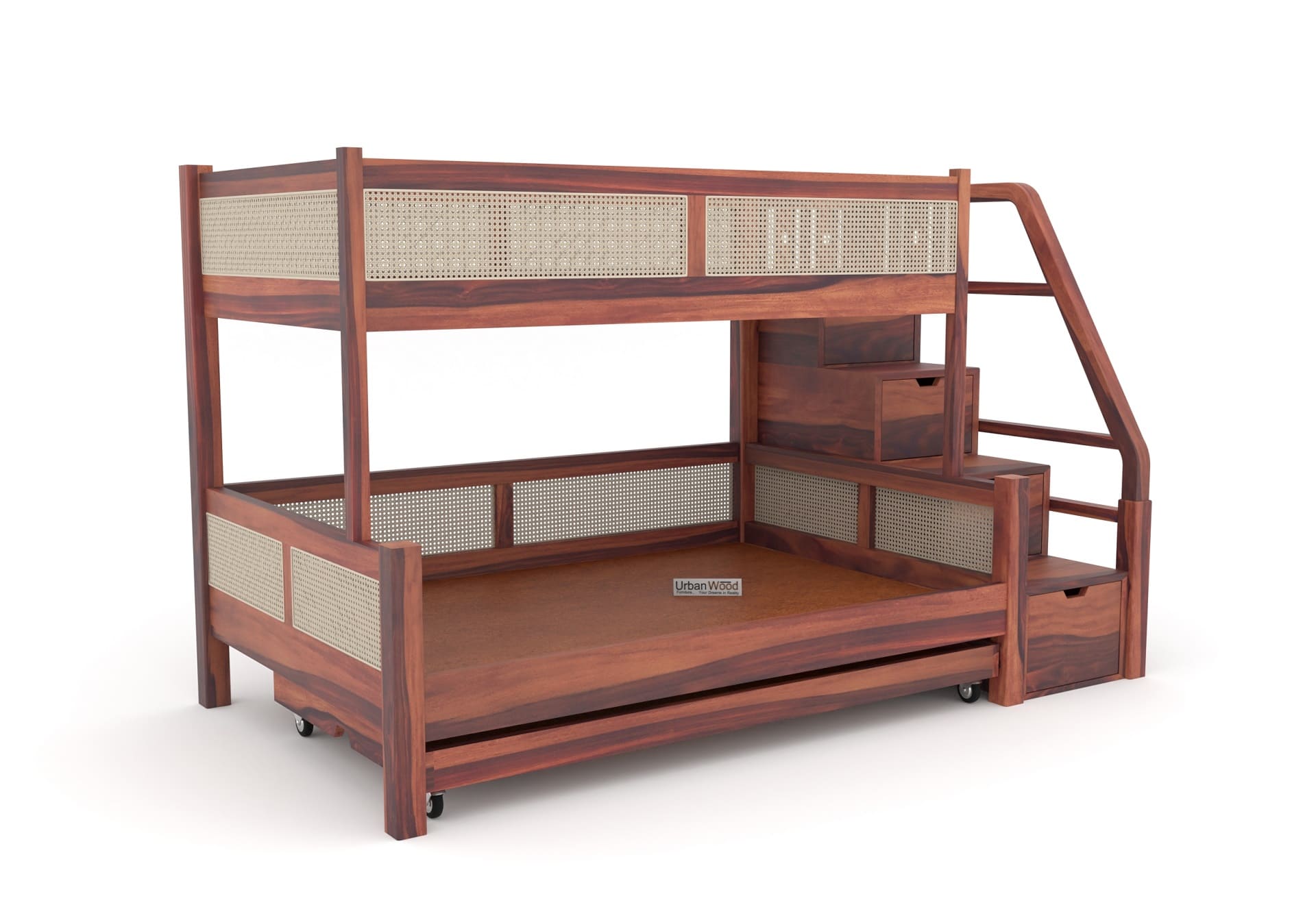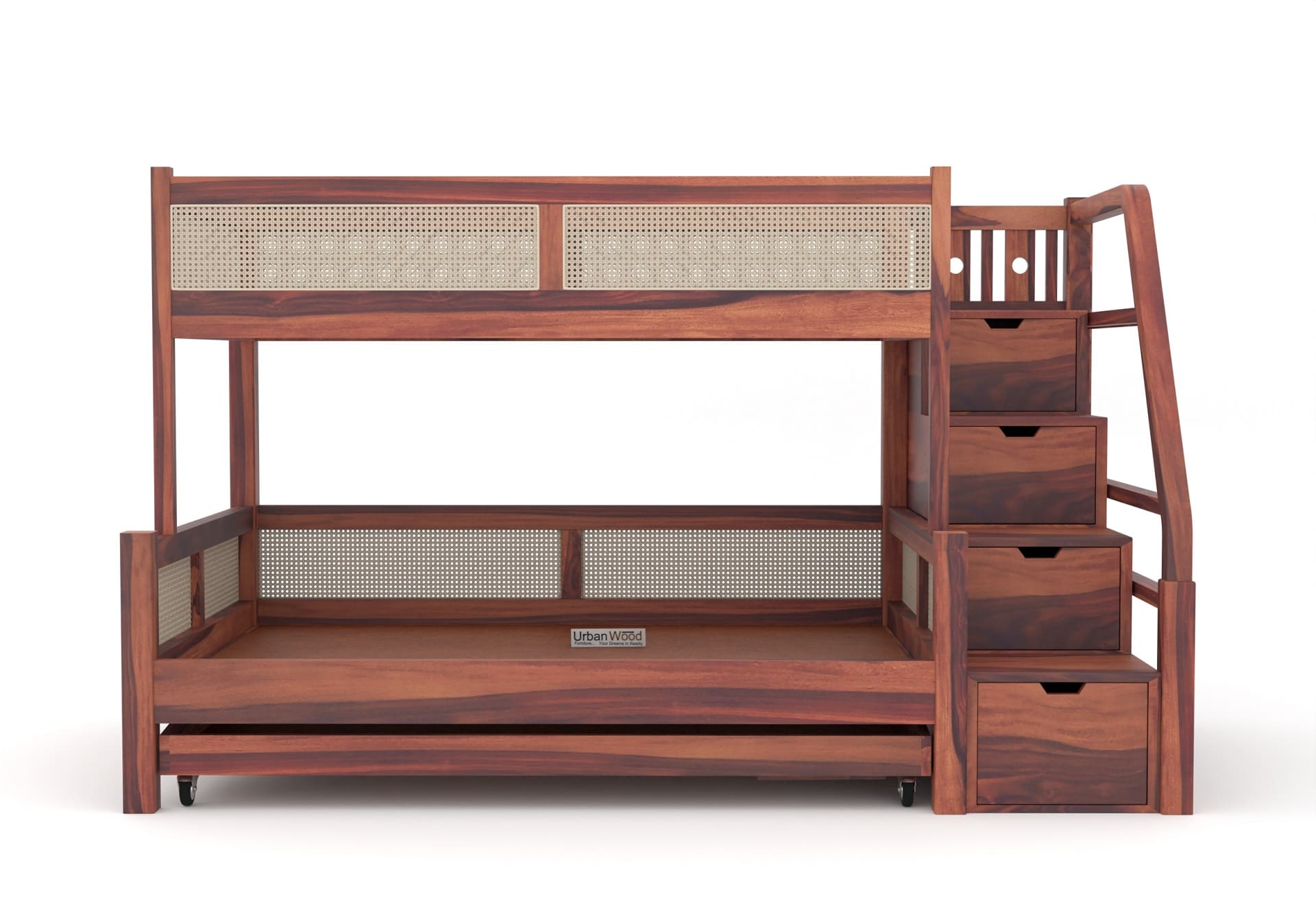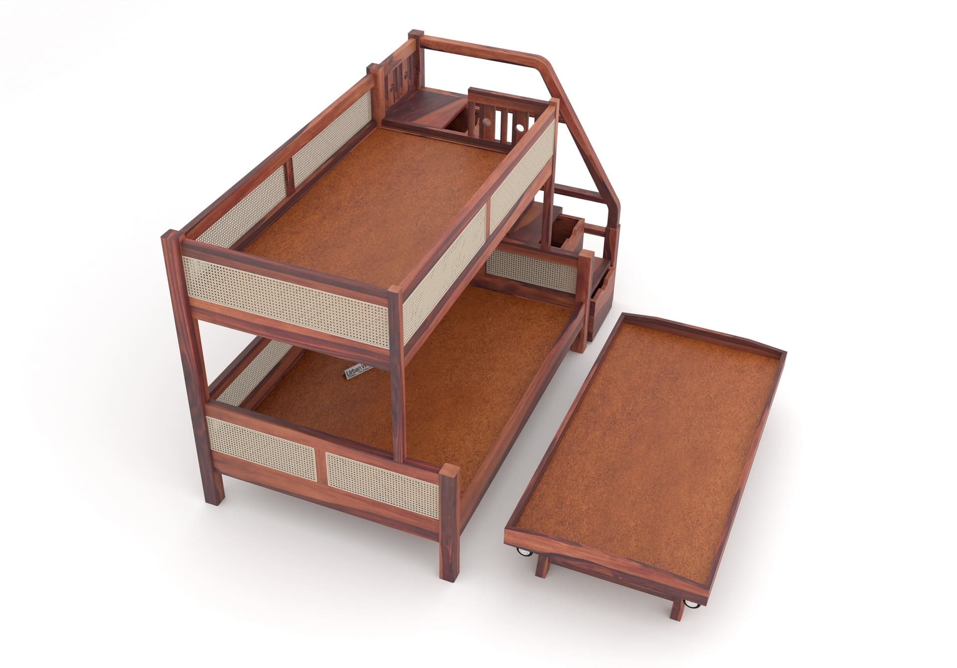 Generic Name -Stark Bunk Bed With Cane And Trundle (Teak Finish)