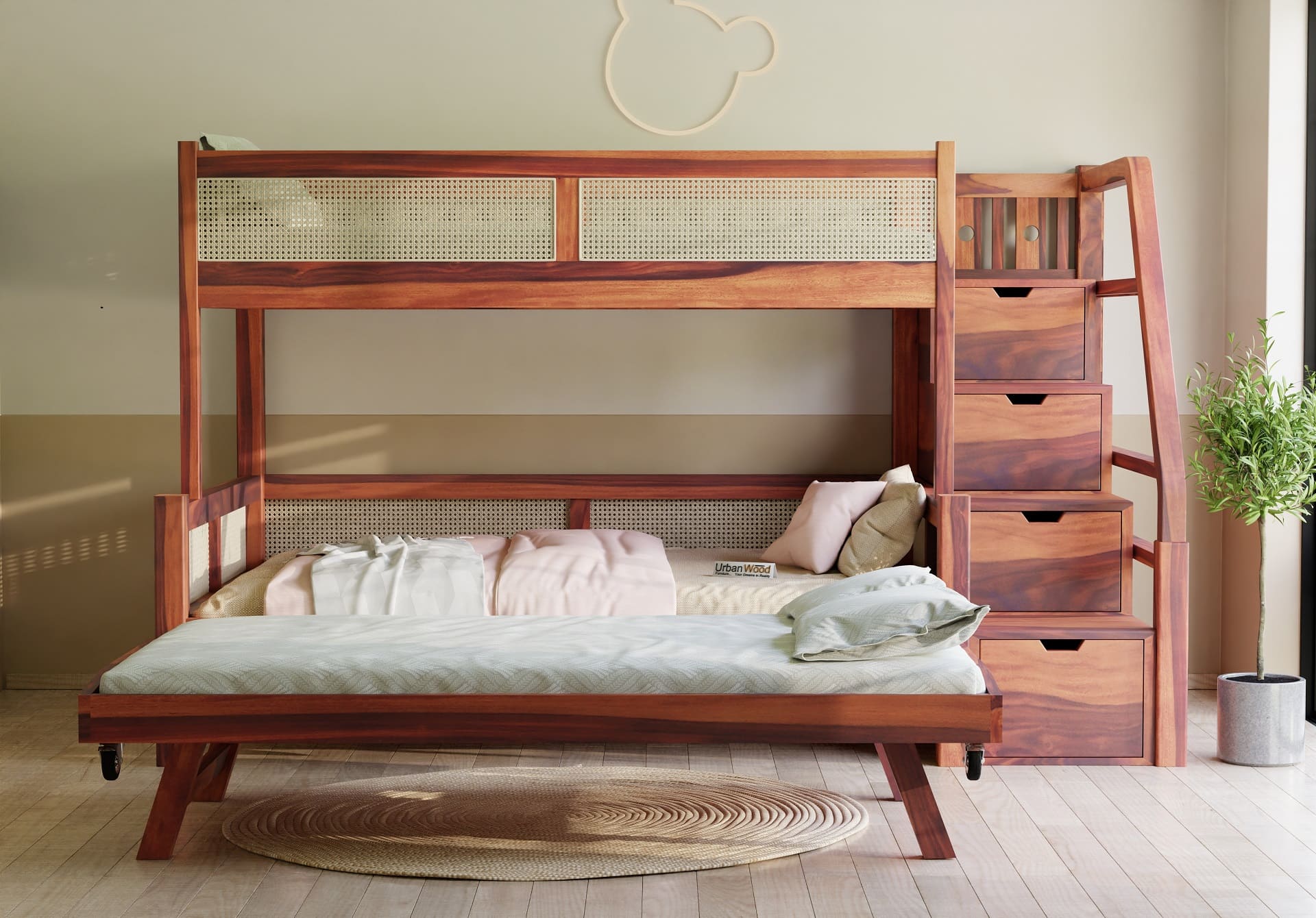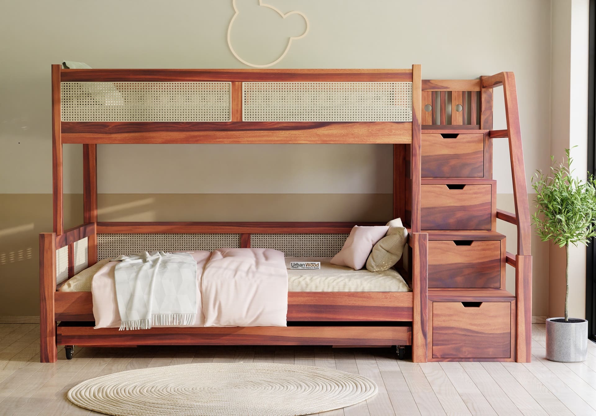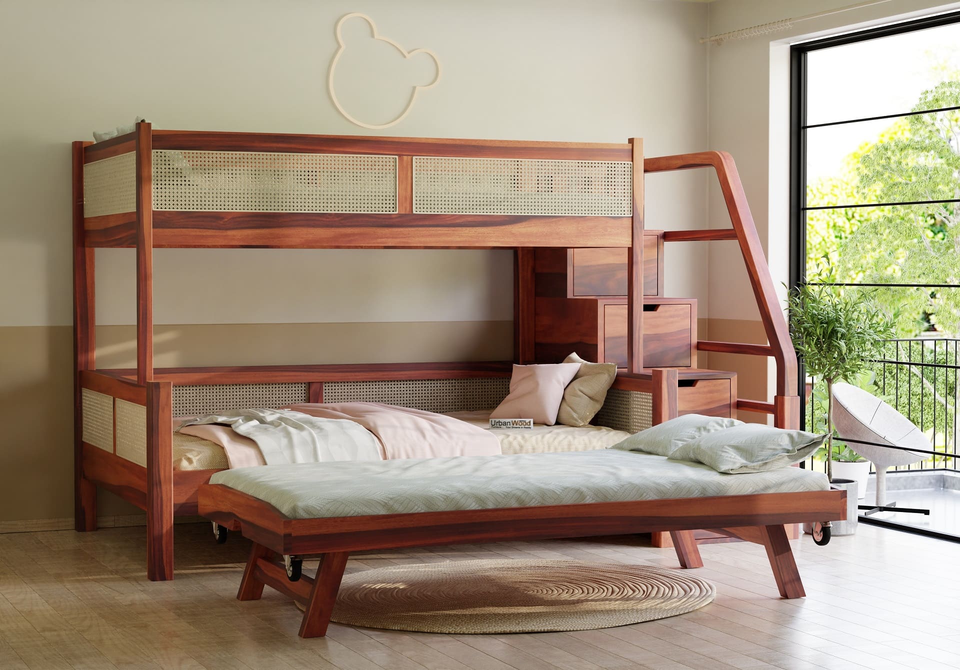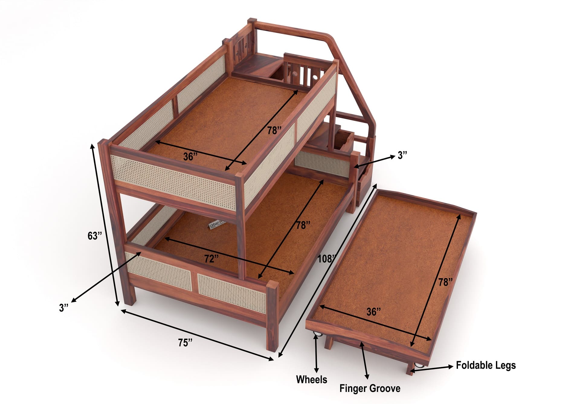 Generic Name -Stark Bunk Bed With Cane And Trundle (Teak Finish)