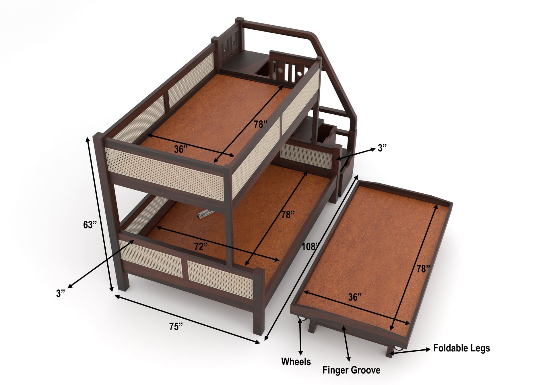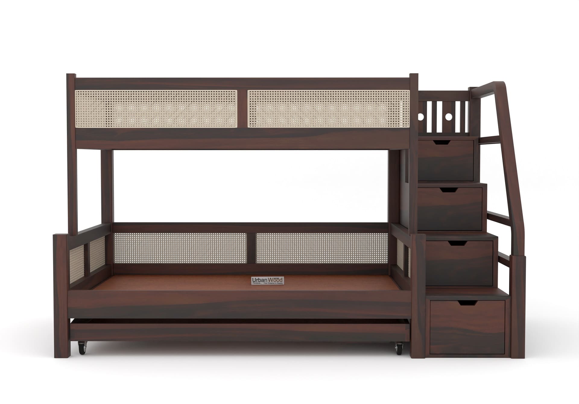 Generic Name -Stark Bunk Bed With Cane And Trundle (Walnut Finish)