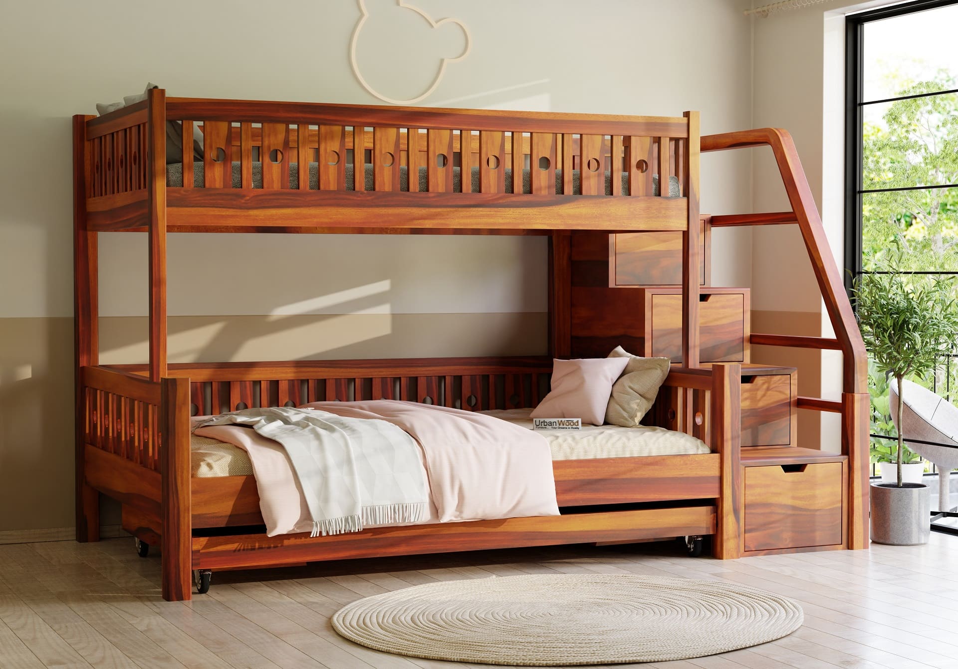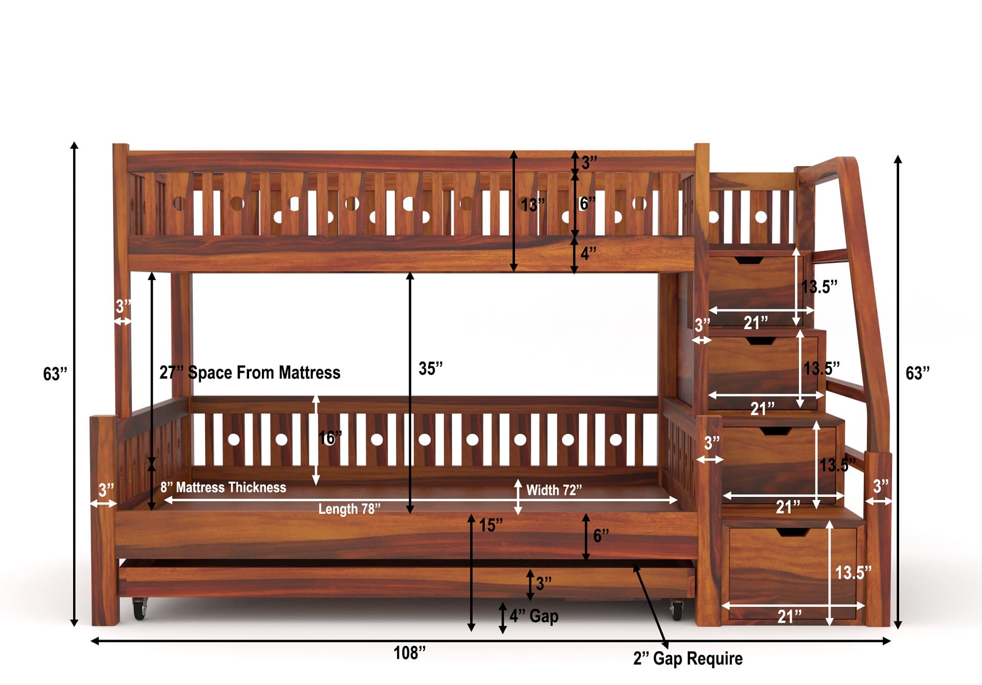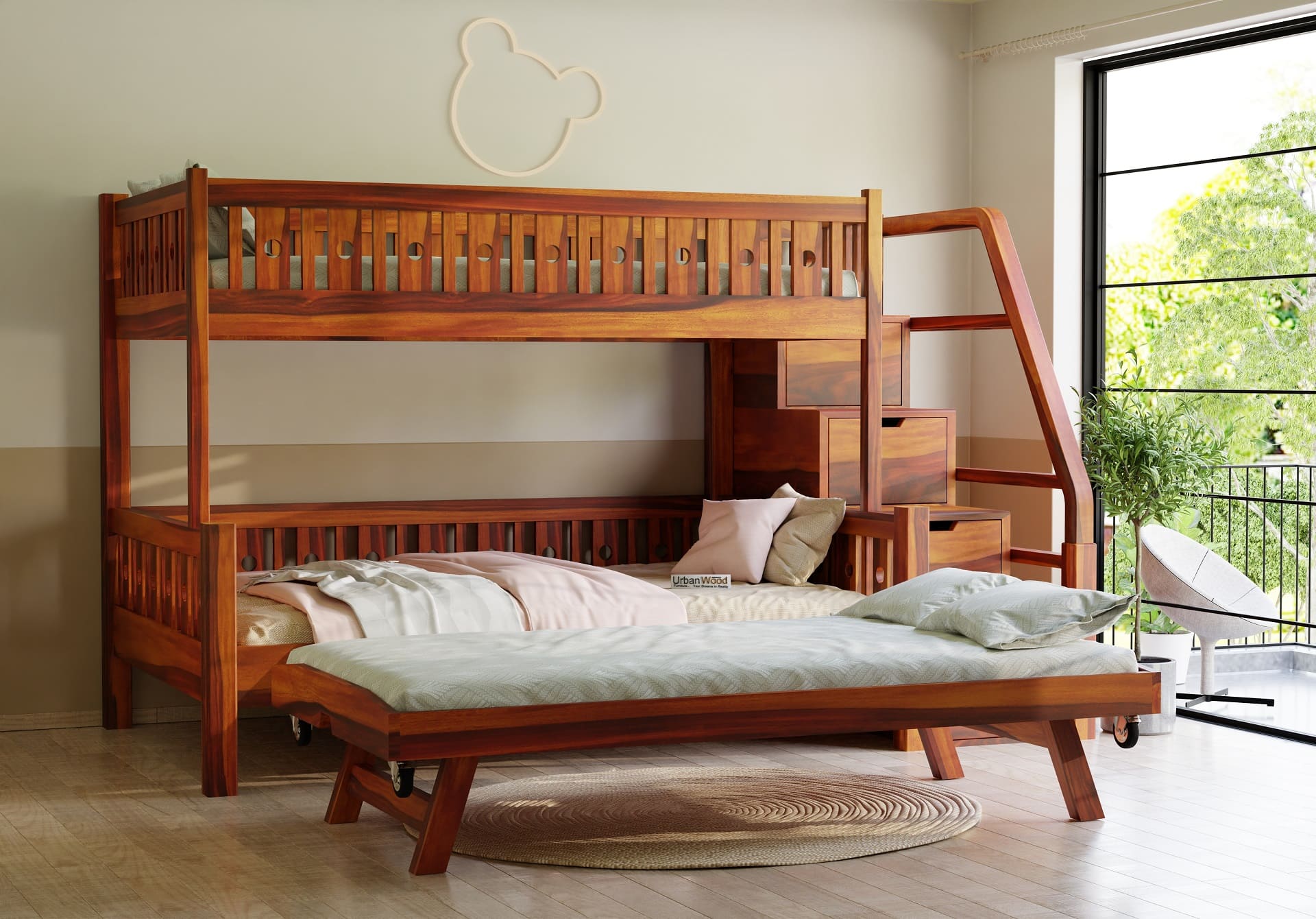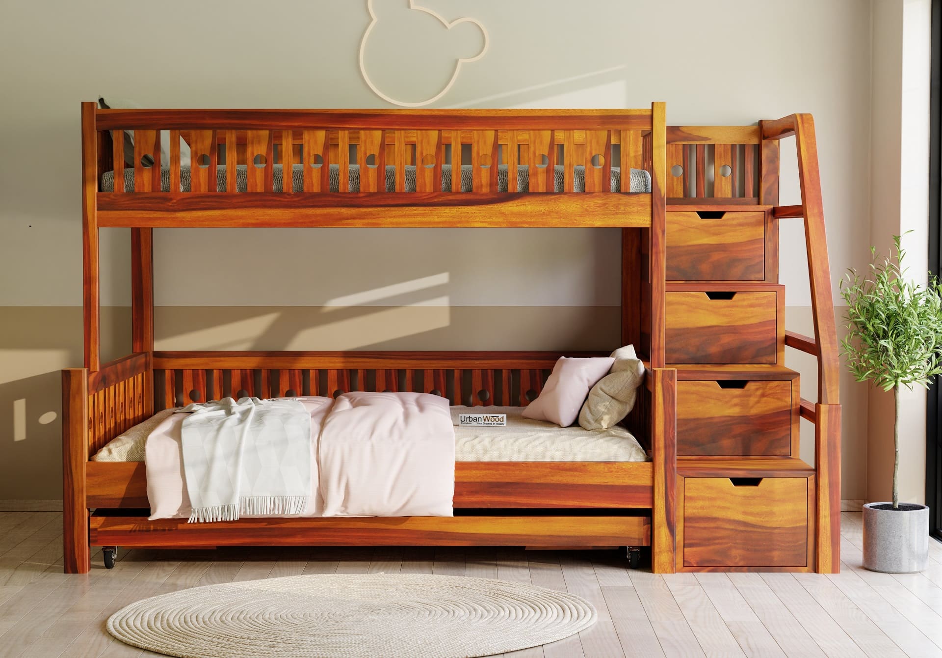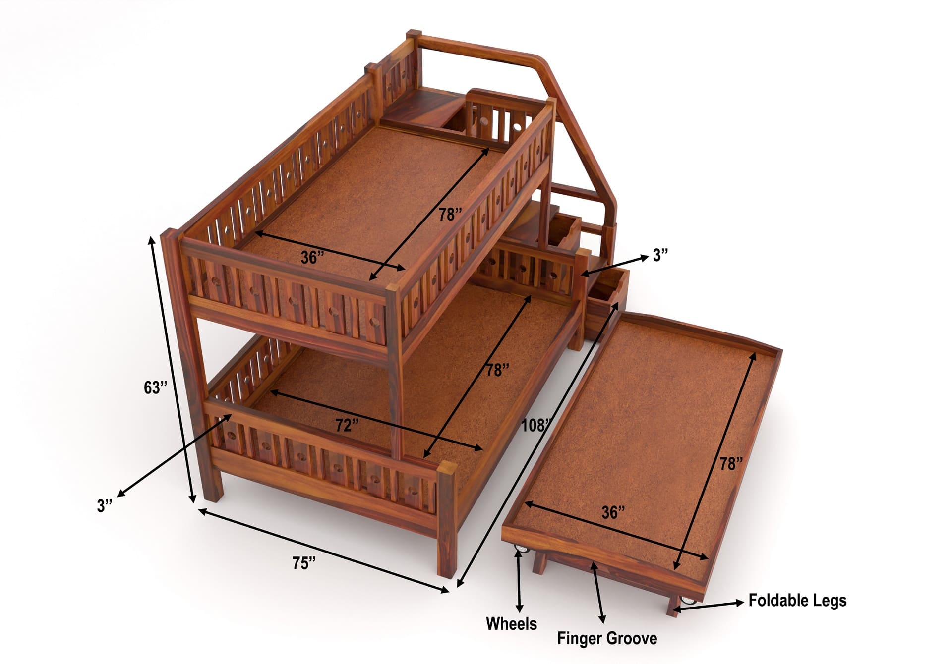 Stark Bunk Bed With Trundle (Honey Finish)