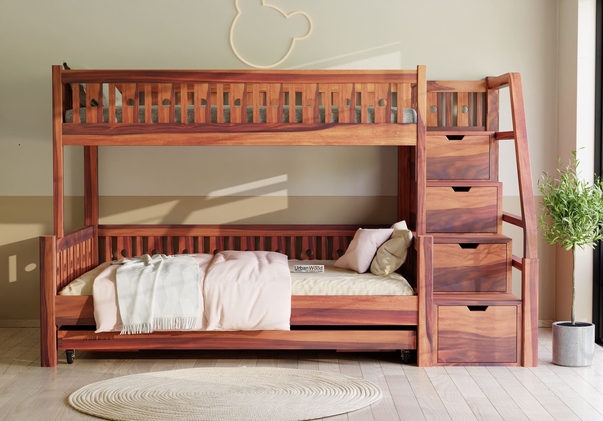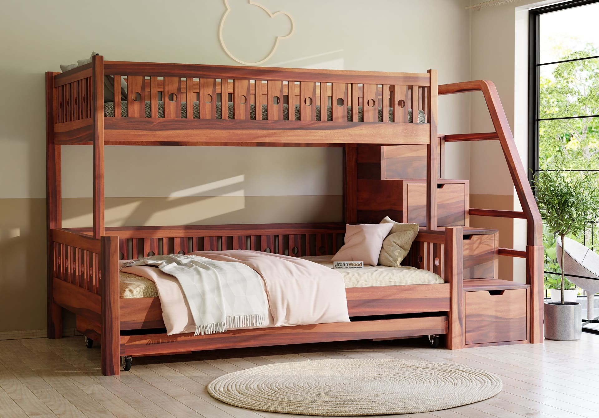 Generic Name -Stark Bunk Bed With Trundle (Teak Finish)