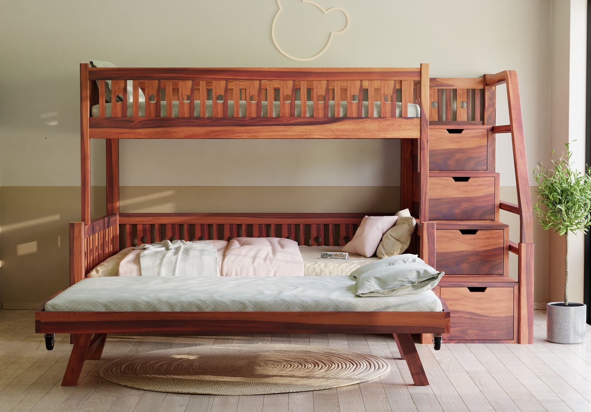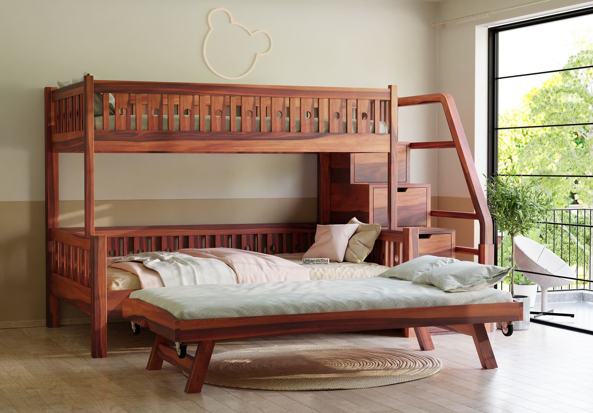 Stark Bunk Bed With Trundle (Teak Finish)