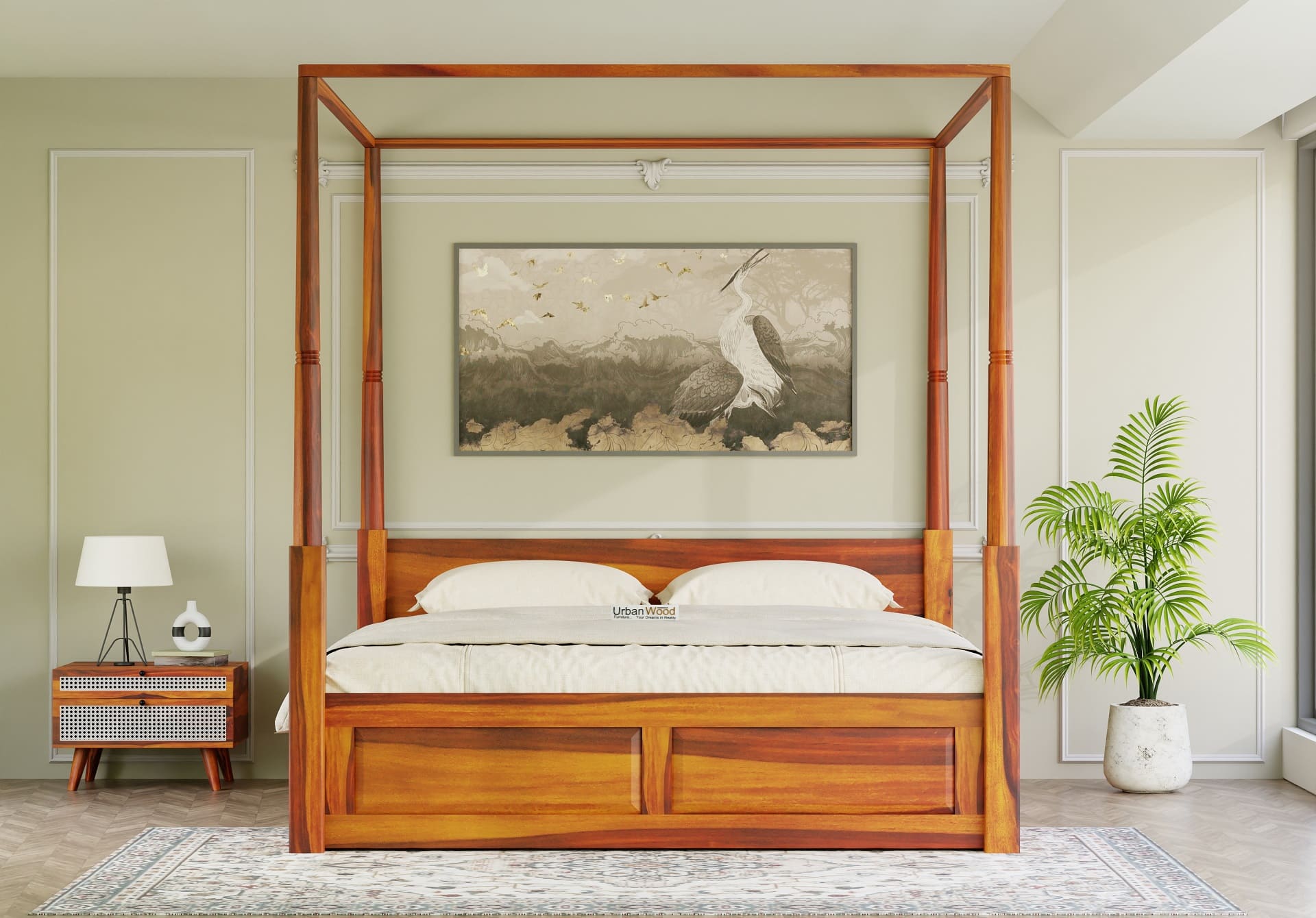 Tuscan Poster Bed With Box Storage (King Size, Honey Finish)