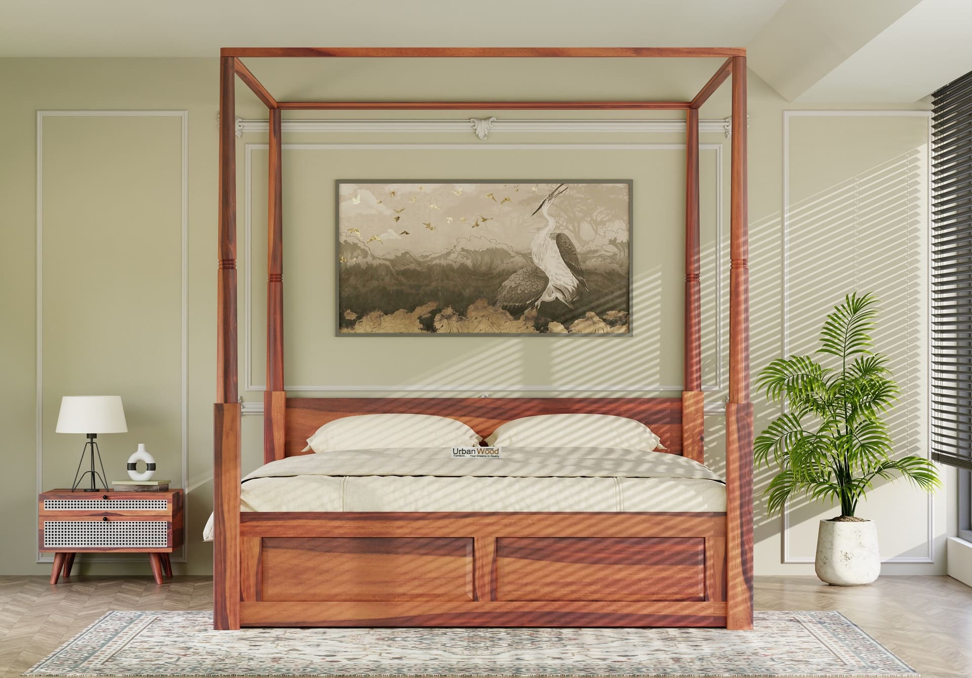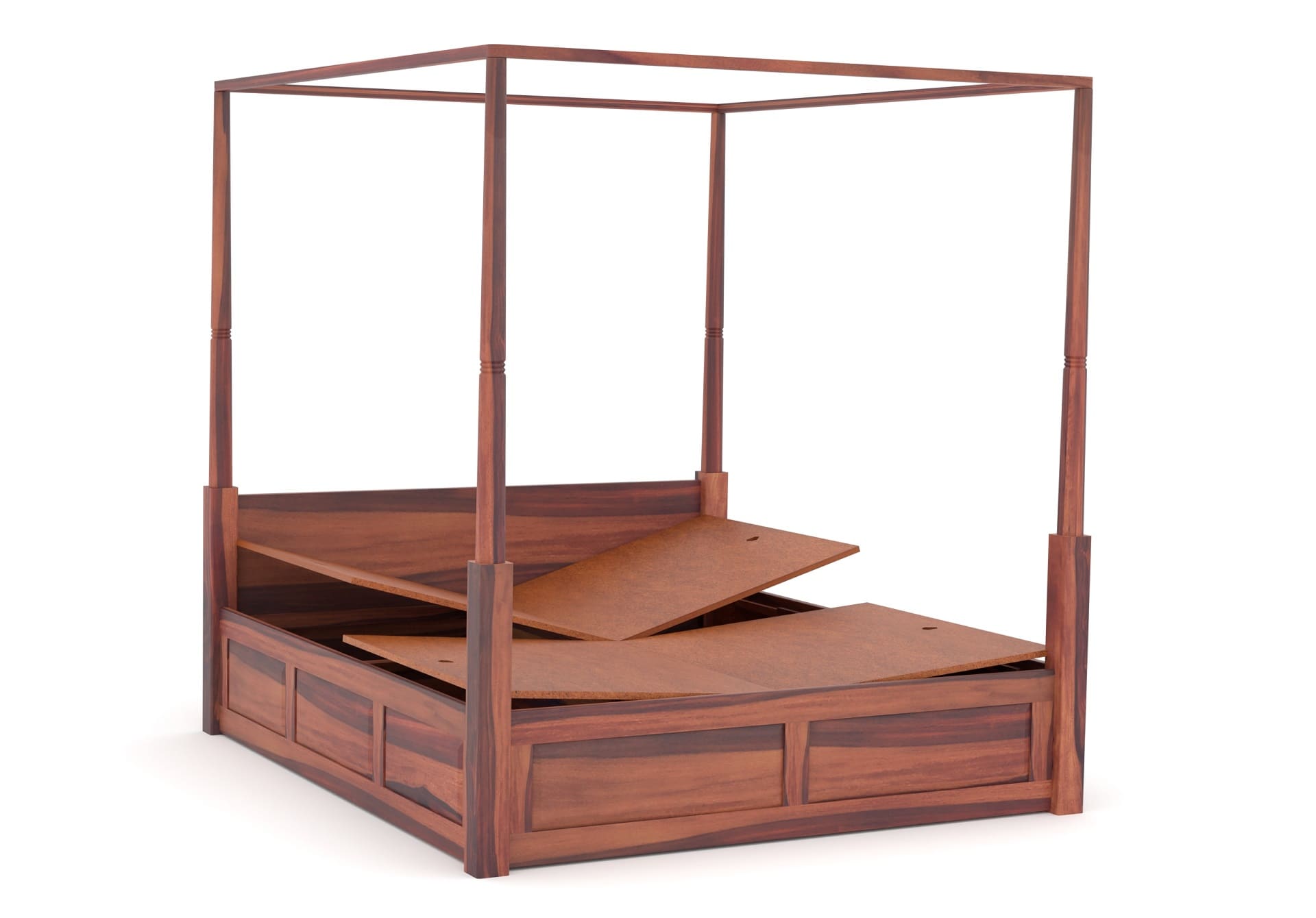 Tuscan Poster Bed With Box Storage (Queen Size, Teak Finish)