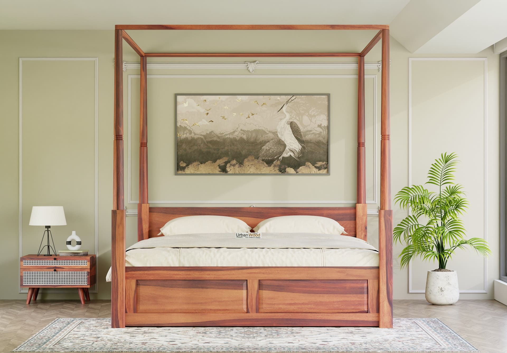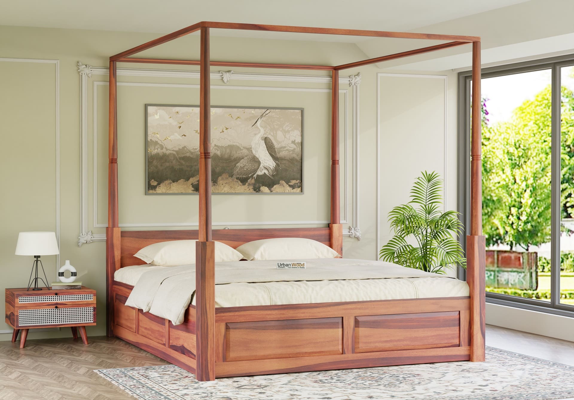 Tuscan Poster Bed With Hydraulic Storage (King Size, Teak Finish)