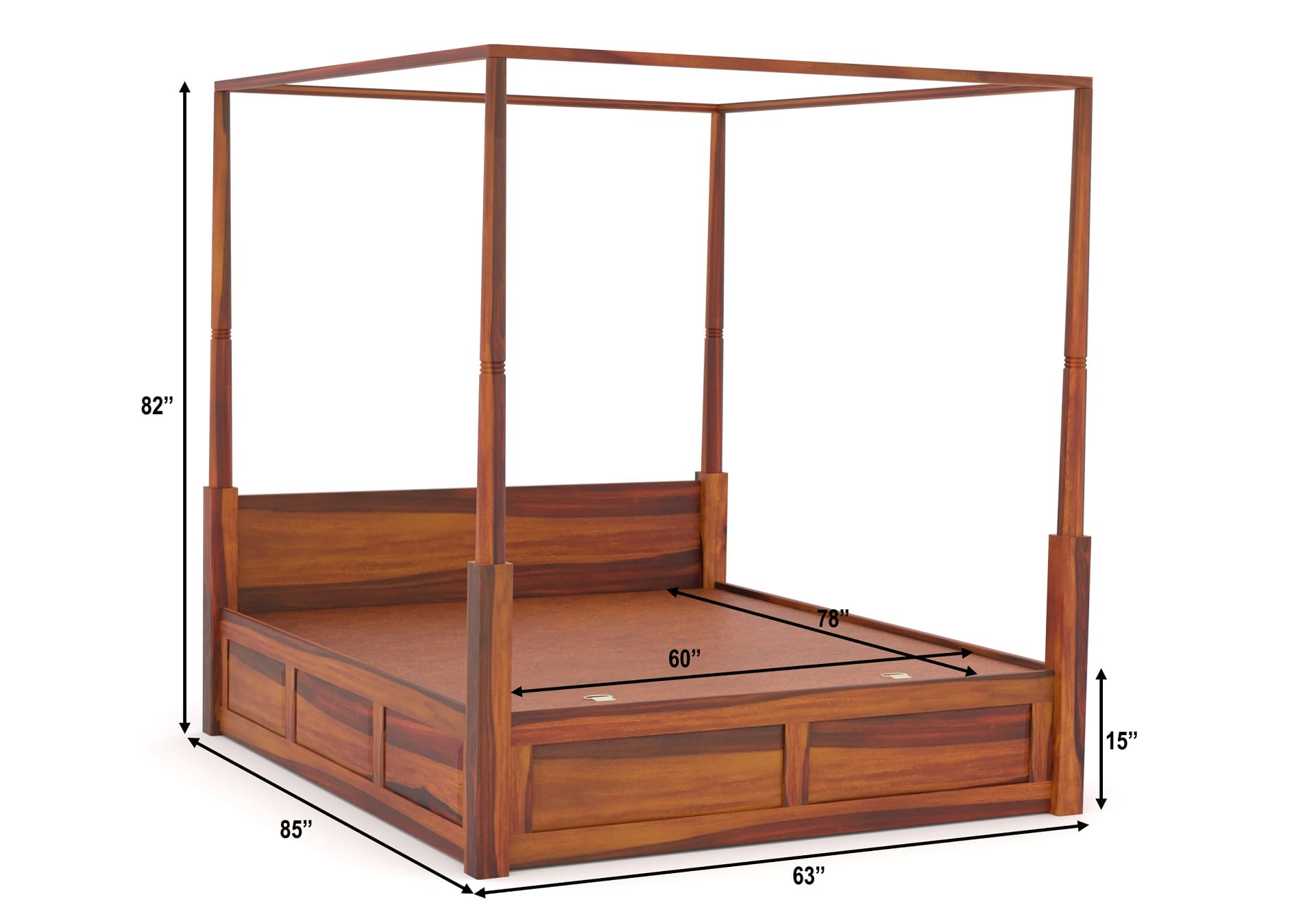 Tuscan Poster Bed With Hydraulic Storage (Queen Size, Honey Finish)